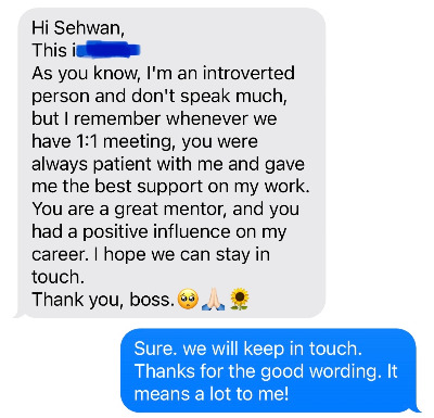 내가 팀을 떠난다고 했을때, 함께 아쉬워해주던 팀원들의 메세지