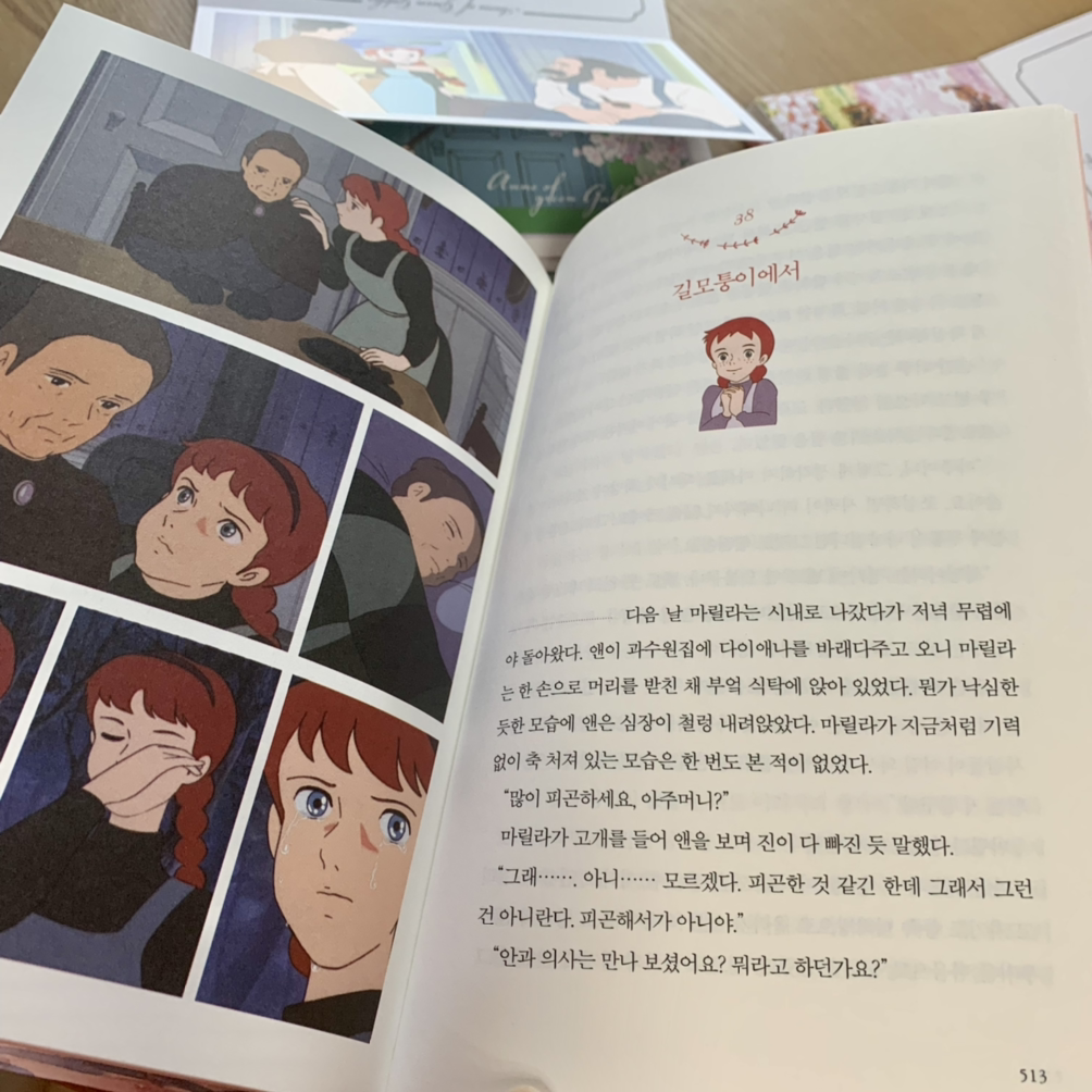책이 도착하고 목차를 훑는데 어떤 챕터의 제목은 얼핏 기억이 나기도 한다. 밤마다 조금씩 읽어내려가며 흐릿했던 이야기의 기억들이 선명해지면서, 웃음이 터지다 눈물이 핑 돌다 한다. “아아 마릴라 아주머니!” 라던가, “저는 절망의 구렁텅이에 빠졌어요!” 같은 한껏 과장된 앤의 말투가 반갑고, ‘자기 전 침대에 넣어주는 따뜻한 물주머니’나 ‘지하실에 있는 자두 절임’ 같은 본 적 없는 것들은 여전히 매력적이다.