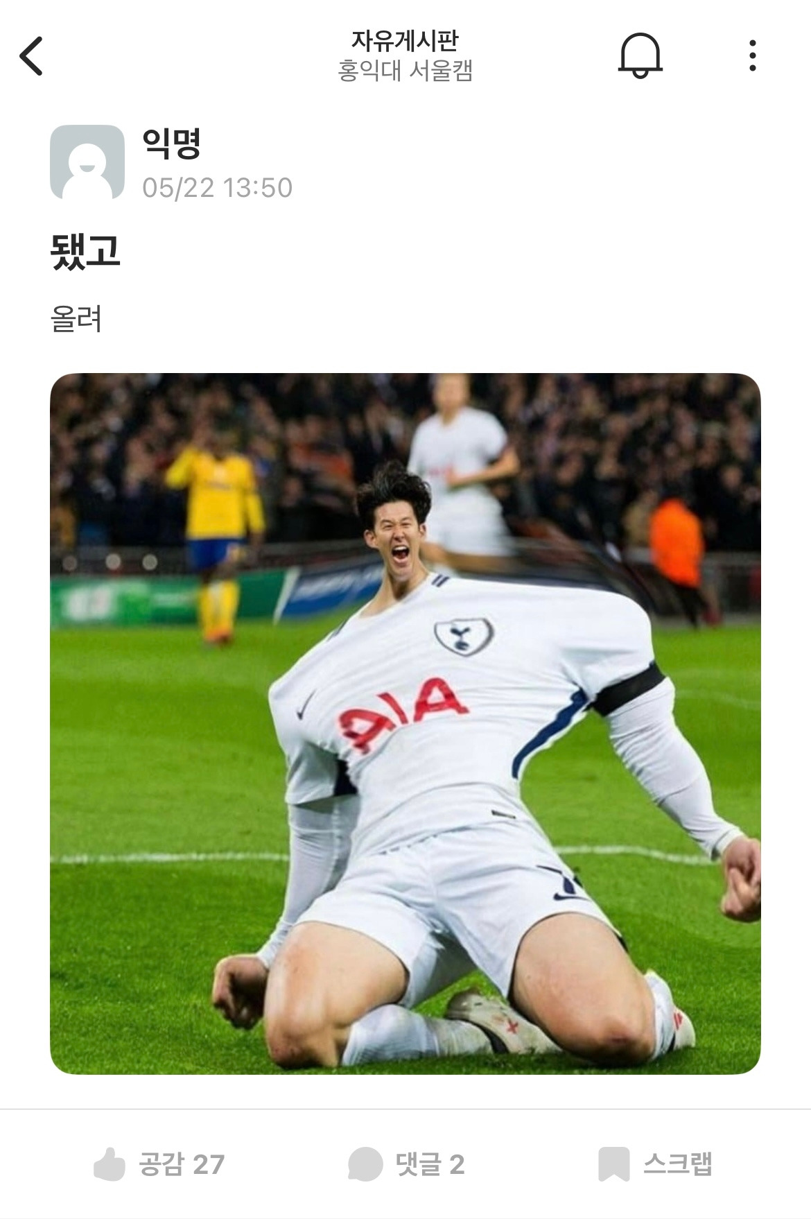 피 끓던 소년이 이제는 젊음의 끝자락에 섰다. 당신이 울 때 나도 울었고 당신이 웃을 때 나도 웃었다. 같은 시간을 우리는 살았고, 나는 당신에게 많은 빚을 졌다. 추억 속의 영원한 우상이 있다는 사실은 커다란 축복이다. 박지성이 그러하였듯 손흥민은 우리 세대의 이름이다. 만고 끝에 이뤄진 그의 염원을 위해 조촐한 잔을 든다. 청춘으로 타오른 시대의 횃불이 이 밤을 밝힌다.