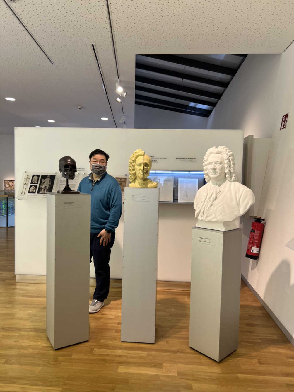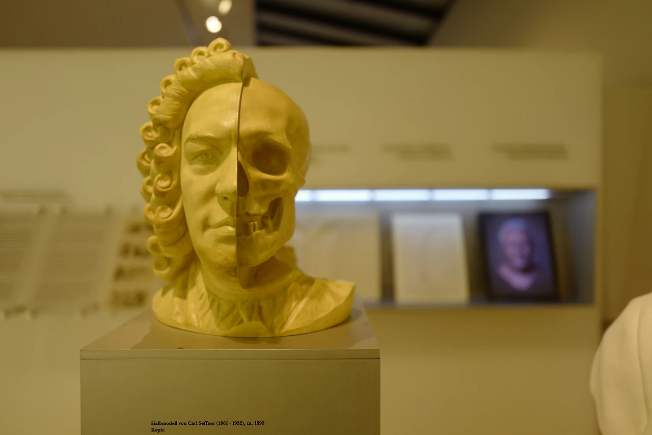 그러다 그가 묻힌 교회가 폭격을 맞아 무덤이 피해를 입었는데 다행히 그의 뼈를 무사히 모을 수 있었다 한다. 그러다 이번이 기회다 싶어 의사, 학자들을 모아서 그의 뼈들을 분석하기 시작했다. 조금이라도 그의 physical shape이 궁금해 forensic study를 한 것이다. 단연 관심은 그의 얼굴이라 해골을 본을 뜨고, 로컬 조각가를 불러 살을 붙여 그의 얼굴을 완성했다. 해놓고 보니 비슷한 초상화도 있었고, 아닌 것도 있었다. 그렇게 심사하고 난 후 우리가 아는 그 바흐 얼굴이 거의 official image 가 된 것이다.