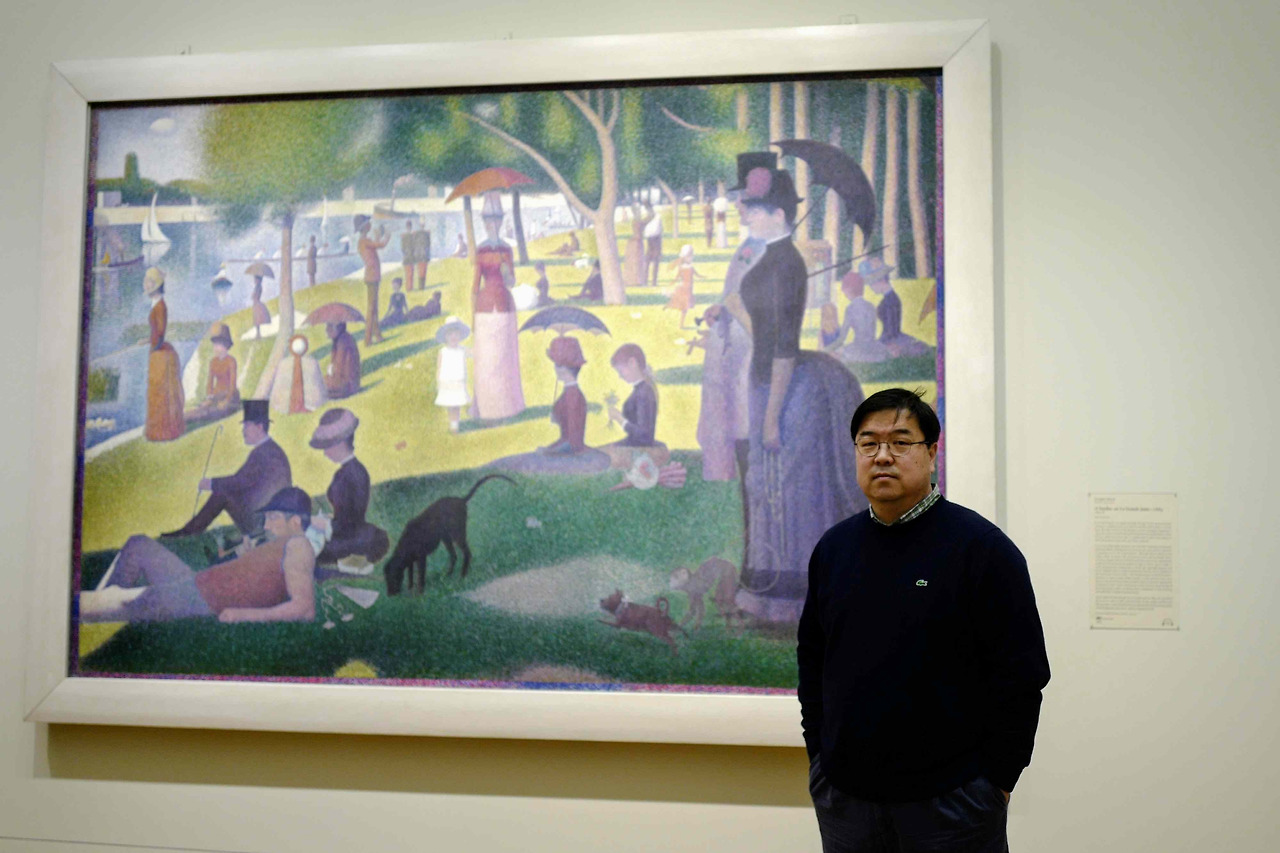 파리에서 귀향한 후에 살던 집 가까이 여기저기서 그림을 시작하다가, 이 아뜨리에가 생긴 후에 정물화를 수없이 그렸다 한다. 우리가 잘 아는 사과그림. (우리 모두는 언젠가 사과를 놓고 그리는 정물화 다 들 한 번씩 그려보았다. 이것이 다 세잔 덕분이다…) 같은 소재를 그리고 또 그리고. 그렇게 단순할 것만 같은 소재를 집요하게 파다 보니 뭔가가 관통한다. 좁은 캔버스 안에는 그의 무한한 세계가 있었고, 일차원적인 세계에서 삼차원을 넘어 그의 시선은 눈에 보이는 세계를 초월하고 있었다, 자신도 모르게. 파리에서 기세등등하던 인상파들의 그림들은 이제 그의 경쟁대상이 아니었다. 그중 한 명이었던 피사로를 세잔은 친구이자 멘토로 모셨다고 한다. 그러고 보면 피사로, Camille Pisssarro는 참 훌륭한 어른이었던 것 같다. 기록에 따르면 그 당시 가장 기세등등했던 모네, Claude Monet 가 그렇게 거부한 쇠라, George Seurat를 등단시킨 것도 피사로였다. 지금 같은면 정말 수용하기 어려운 MZ 세대였던 쇠라였다. 그의 무지무지 큰 그림, A Sunday Afternoon on the Island of La Grande Jatte를 과감하게 전시회에 건 피사로의 결단이었다고 한다. (뒤 끝 있던 모네로 이로 인해 피사로와 한동안 멀어졌다.) 쇠라의 그 큰 그림은 파리에서 기득권에 외면당하고, 미국의 한 콜렉터에 의해 구매되어 대서양을 건너왔고, 나중에 프랑스 정부에서 다시 살려고 무지 노력했으나 보란 듯이 지금은 시카고 박물관에 걸려있다. (프랑스에서 얼마나 땅을 치고 후회를 했을까? 기득권들이여, 신세대를 무시하지 맙시다.) 그런 피사로가 세잔도 지극히 챙겼다 한다.