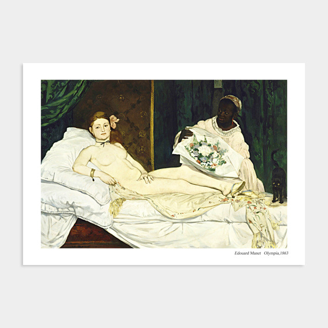 내가 이 그림을 보고 제일 먼저 생각한 것은.. 이 작품은 마네의 올랭피아의 뉴버전이라는 것이다. 올랭피아가 1863년에 전시되었고, 위의 그림은 1909년에 그려졌으니 꼭 46년 차이가 난다. 르네상스 시절부터 정형화된 고전주의 미술이 19세기 파리에서 균열이 가기 시작한다. 바야흐로 ‘인상파’라는 별명을 가진 새로운 세대가 나타난 것이다. 그때, 가장 강력한 한방으로 높은 모자와 긴 콧수염으로 위세 등등 하던 꼰대들을 머리끝까지 화나게 폭탄을 터뜨린 장본인이 마네였으며 대표 그림이 올랭피아였다. 사회적으로 아직 여성의 신분은 노예나 다름없었지만, 화폭에서의 여성은 언제나 그리스 여신처럼 완벽하기만 했던 철저한 모순을 적나라하게 고발한 올랭피아는 핵폭탄의 위력으로 미술계의 판을 뒤집어 버렸다. 같은 시기에 그려진 ‘풀밭에서의 식사’에서 마네가 그리는 여인의 모습은 더 과감해진다. 아무런 거리낌 없이 남자들 사이에 누드로 앉은 여인이 그림을 바라보는 사람들의 시선을 정면으로 끌어당긴다. 워낙 큰 사이즈의 그림이라 어디에서도 그 여인의 눈길을 피할 수가 없이 그려졌다. 올랭피아의 위력은 대단했고 현대미술의 문을 열어버린 낭만파 시대가 시작된다.