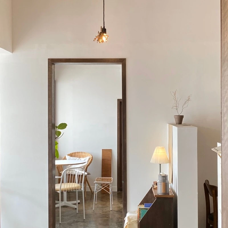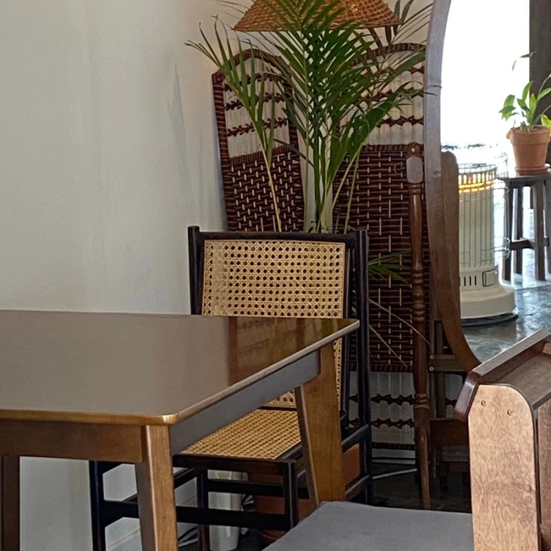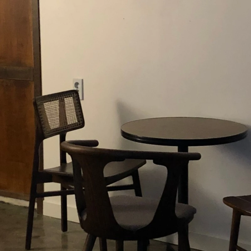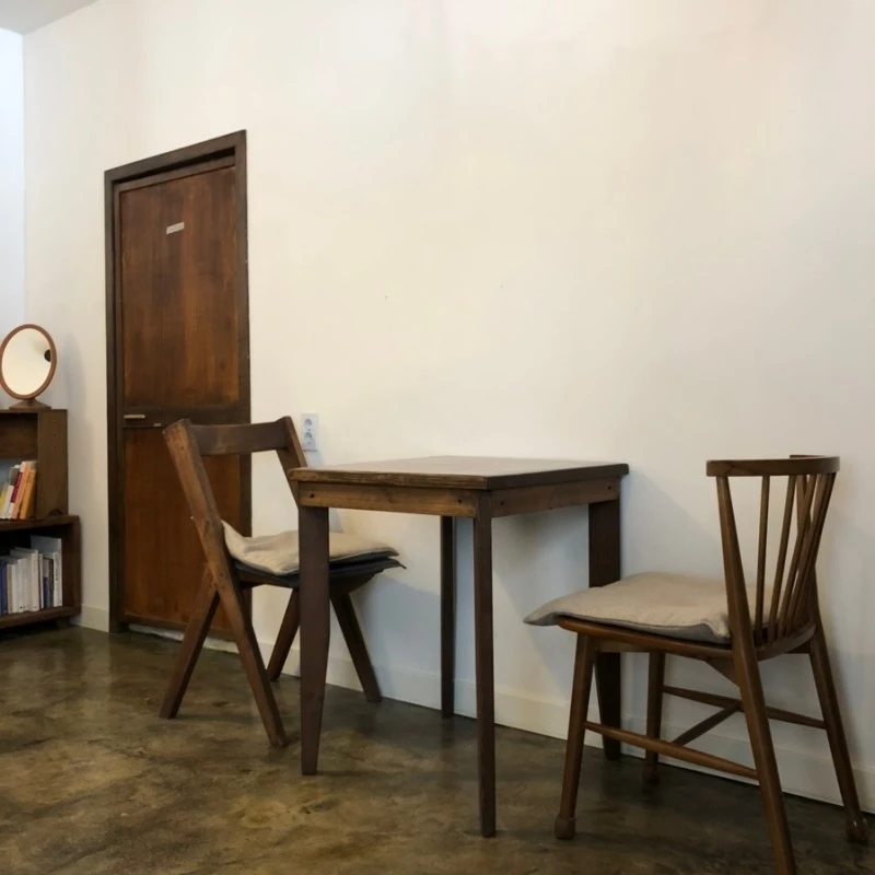 기존 라탄의자를 제외하고는 테이블과 의자, 보조의자를 배치했는데 뉘앙스의 차이는 거의 없다. 조금 더 정돈된 느낌을 지향했고 벽과 나무, 철의 조화에 중점을 두고 교체했다. 기존의 라탄의자를 사용하기에 보조의자는 새 의자와 라탄의자의 뉘앙스가 적절히 섞인 것으로 골랐다.