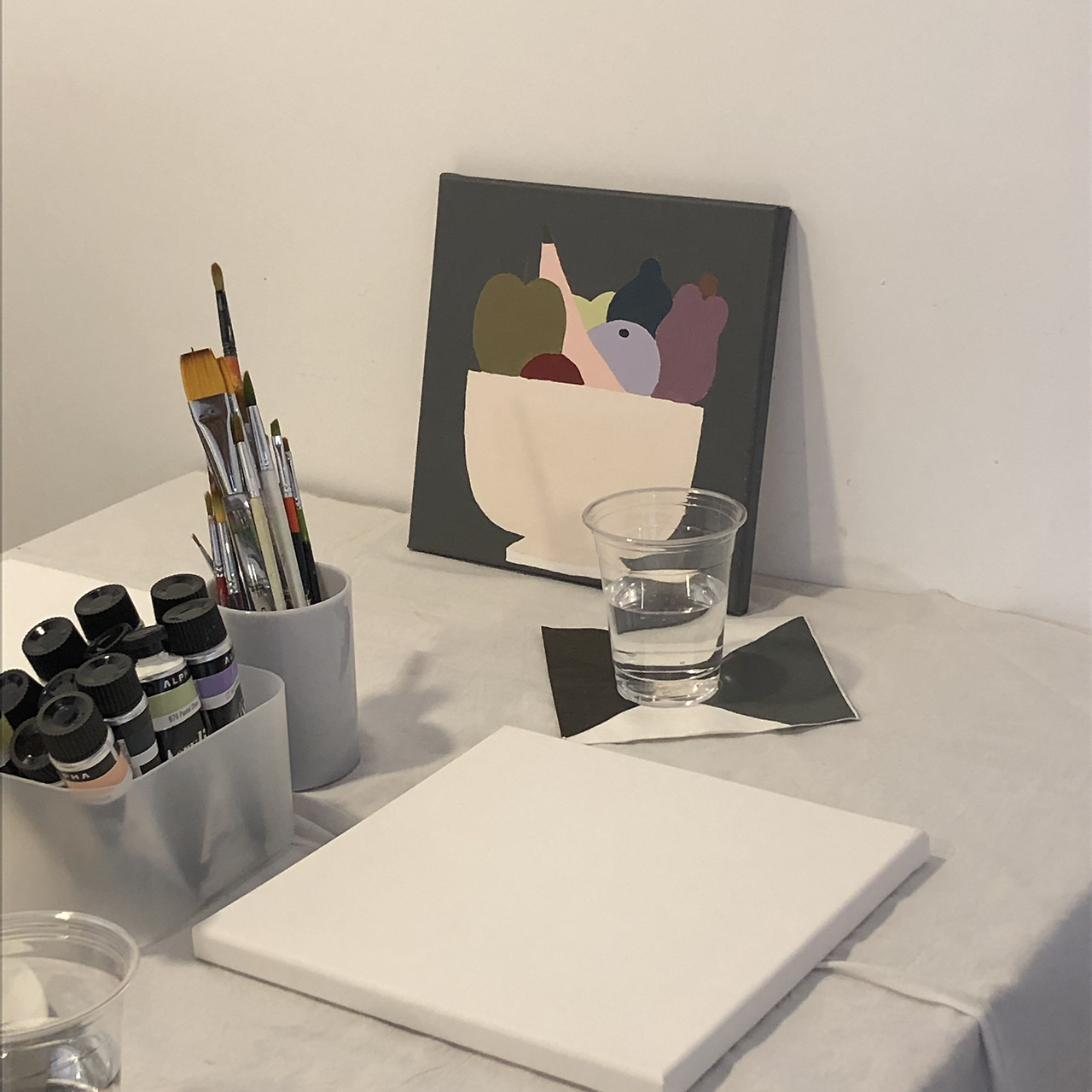 네 달, 새로운 수업 ‘,littleforest.art’ 님의 ‘따뜻한 정물화’ 수업. 정물화란 생명이 없는 물건 즉, 화초와 과일, 죽은 고기와 새, 악기, 책, 식기 등을 그림을 말한다. 수업에는 차분하고 따뜻한 색채의 정물 명화를 감상하고 마음에 드는 작품을 아크를 물감을 이용하여 모사하는 것으로 진행되었다. 선생님은 조르조 모란디, 에두아르 마네 등의 정물 작품에 얽힌 재미있는 이야기들도 들려주셨고, 아크릴 물감 사용방법과 차분하고 따뜻한 색 만드는 방법도 설명해 주셨다.