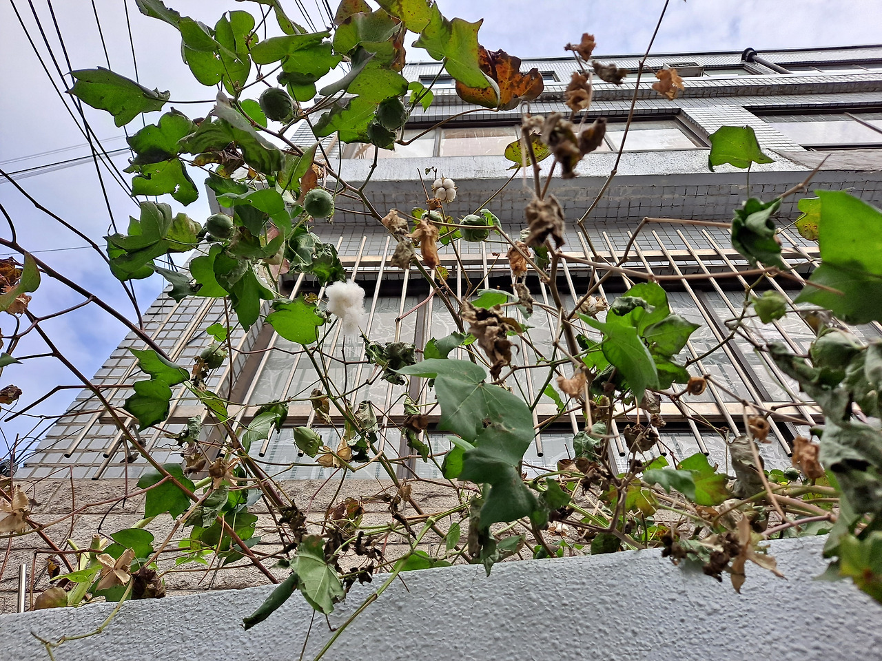 산밑 주택가 골목길에서는 머리 위로 흰 솜 목화꽃 두 송이를 보았다. 그 집주인이 2층 화단에 심어 두고 여름내 길렀을 것이다.