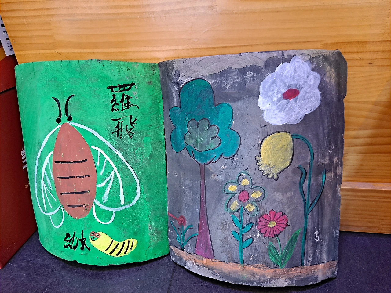 오패산로 건강식품가게 "허브앤씨드"에서 발견한 기왓장 그림 ㅡ '나비'라고 지은 한자이름, 참 이쁘다.