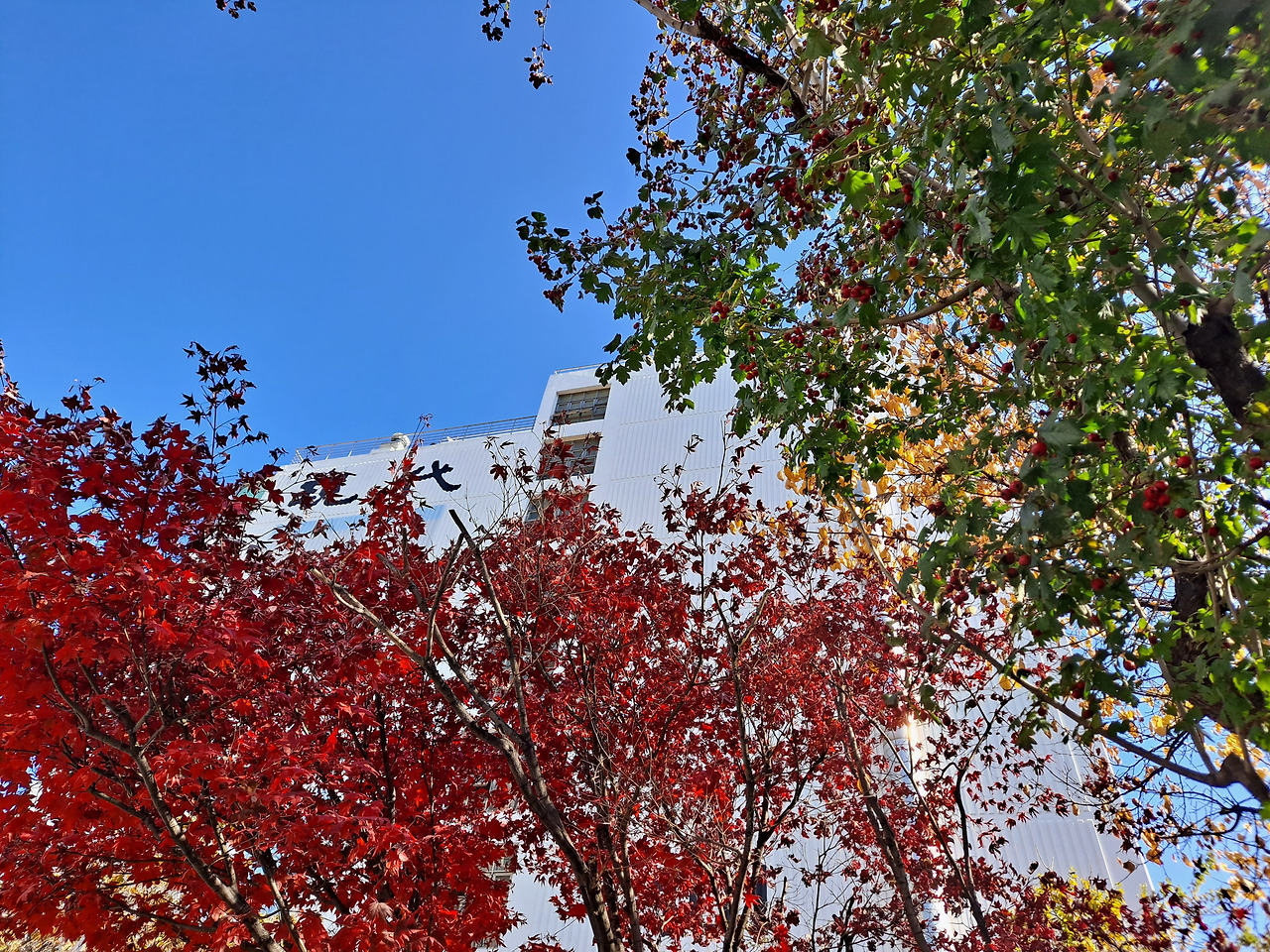푸른 잎과 단풍,그리고 빨갛게 익은 열매ㅡ창동시장 골목길