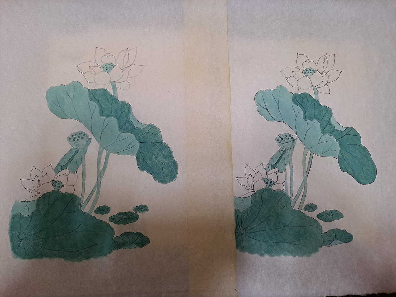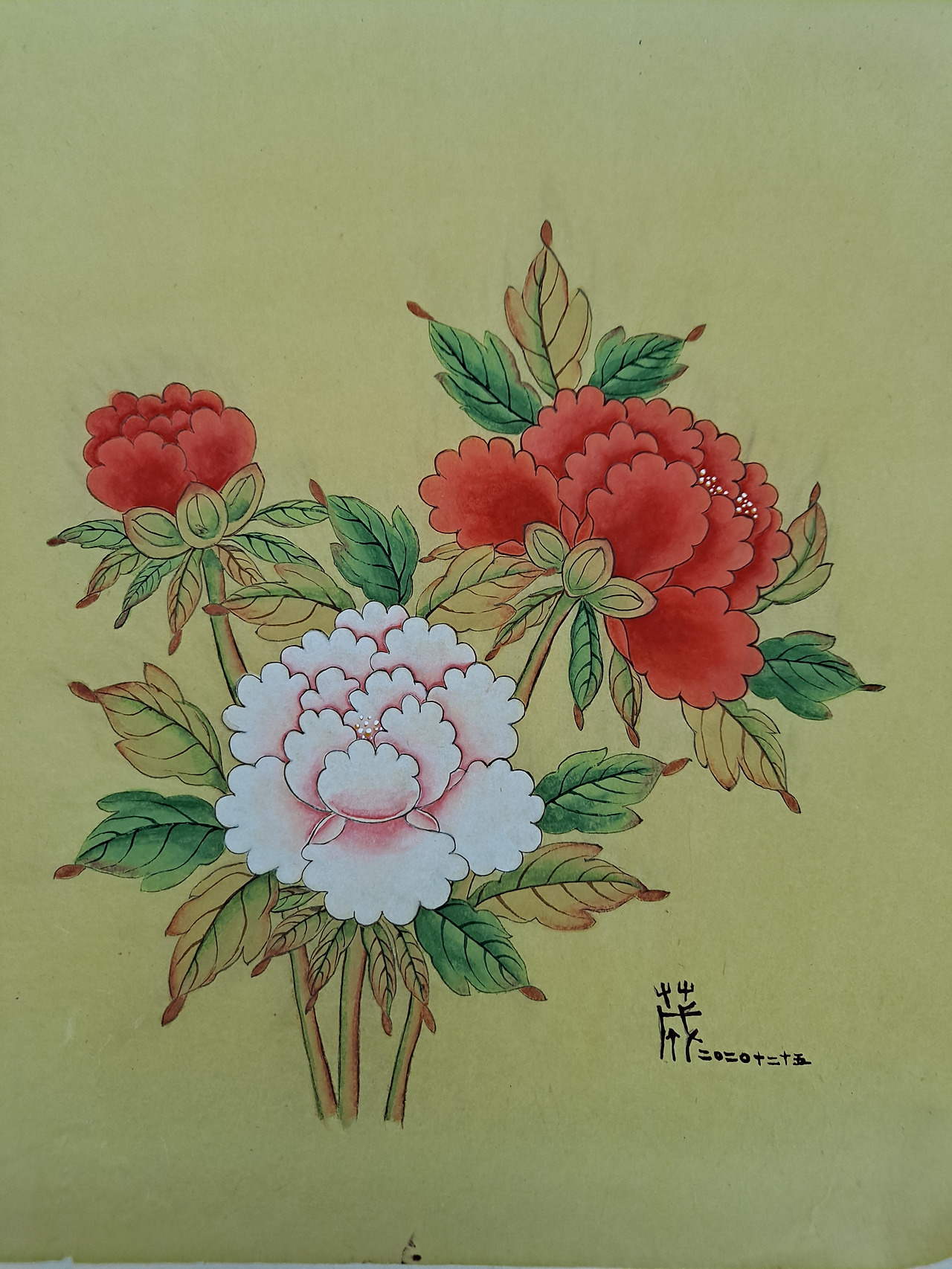 그 사이, 나는 매주 1회 2시간씩 민화반에 나가 모란꽃 세 송이와 잎사귀들에 색을 입혔다.
