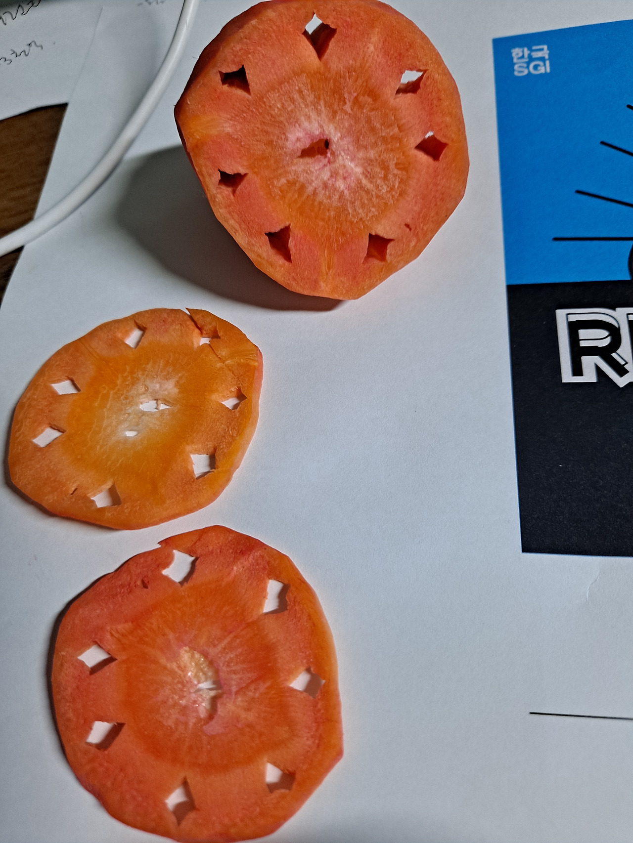 수업을 마치고 집에 돌아와서도, 마음과 손이 미술이란 범주에서 떠나질 못해, 괜히 남은 물감에 비교적 질긴 종이를 찾아 적셔도 보고, 당근을 썰어 물감을 인주 삼아 도장을 찍어도 보고...