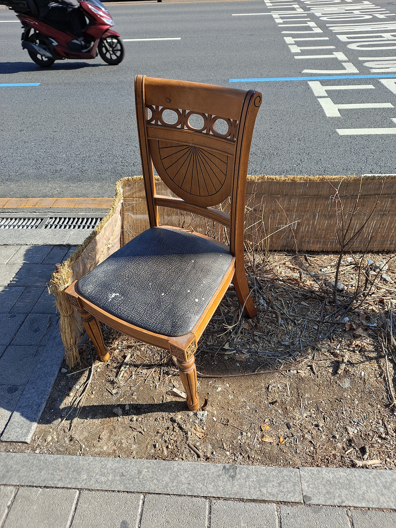 그 순간 버려진 낡은 의자 하나가 바로 앞에 있는 게 보였다.