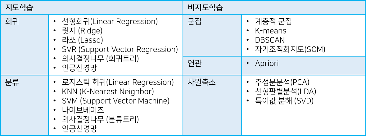 지도학습과 비지도학습 (위키북스, ADsP 데이터분석 준전문가)