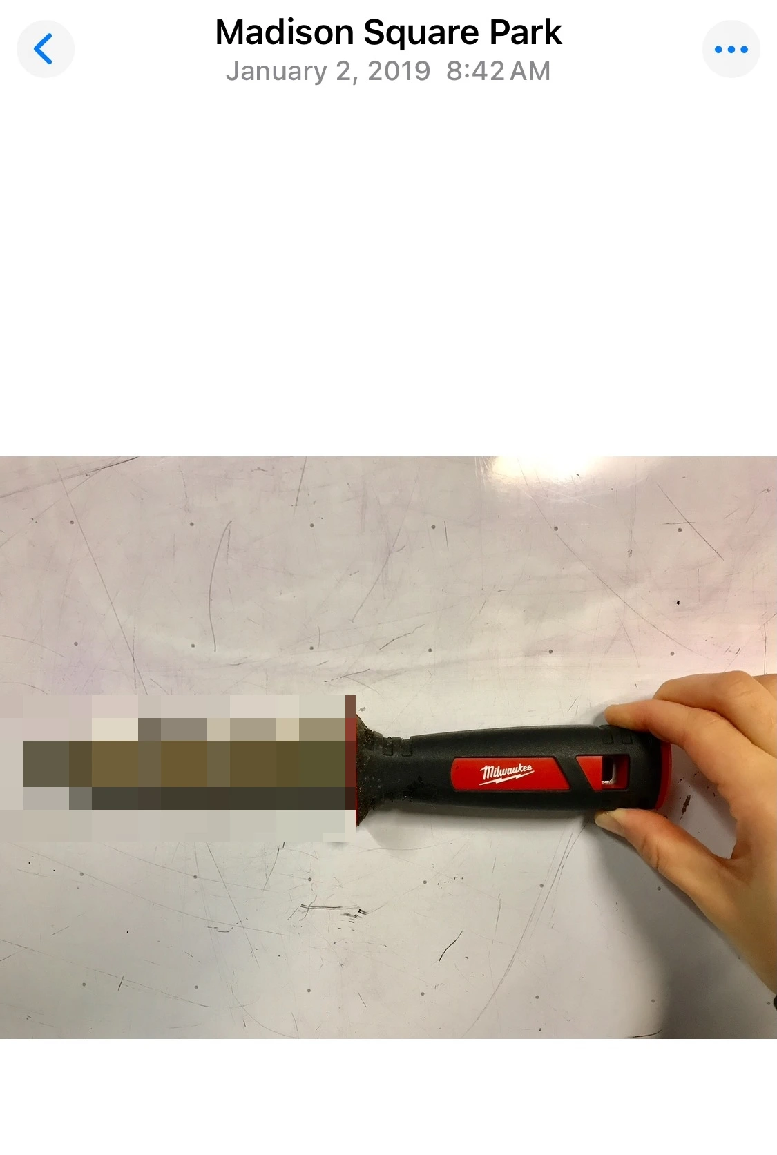 "sharp object"이라고 육면에 크게 쓴 다음 쓰레기통에 버렸다.