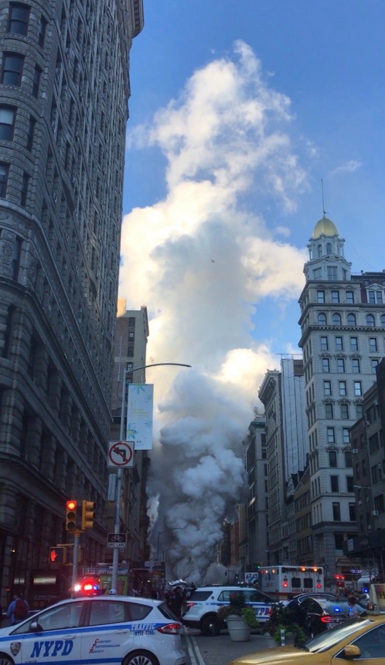 “공원 스텝들 들으세요. 21번가 빌딩 스팀파이프가 터졌습니다.