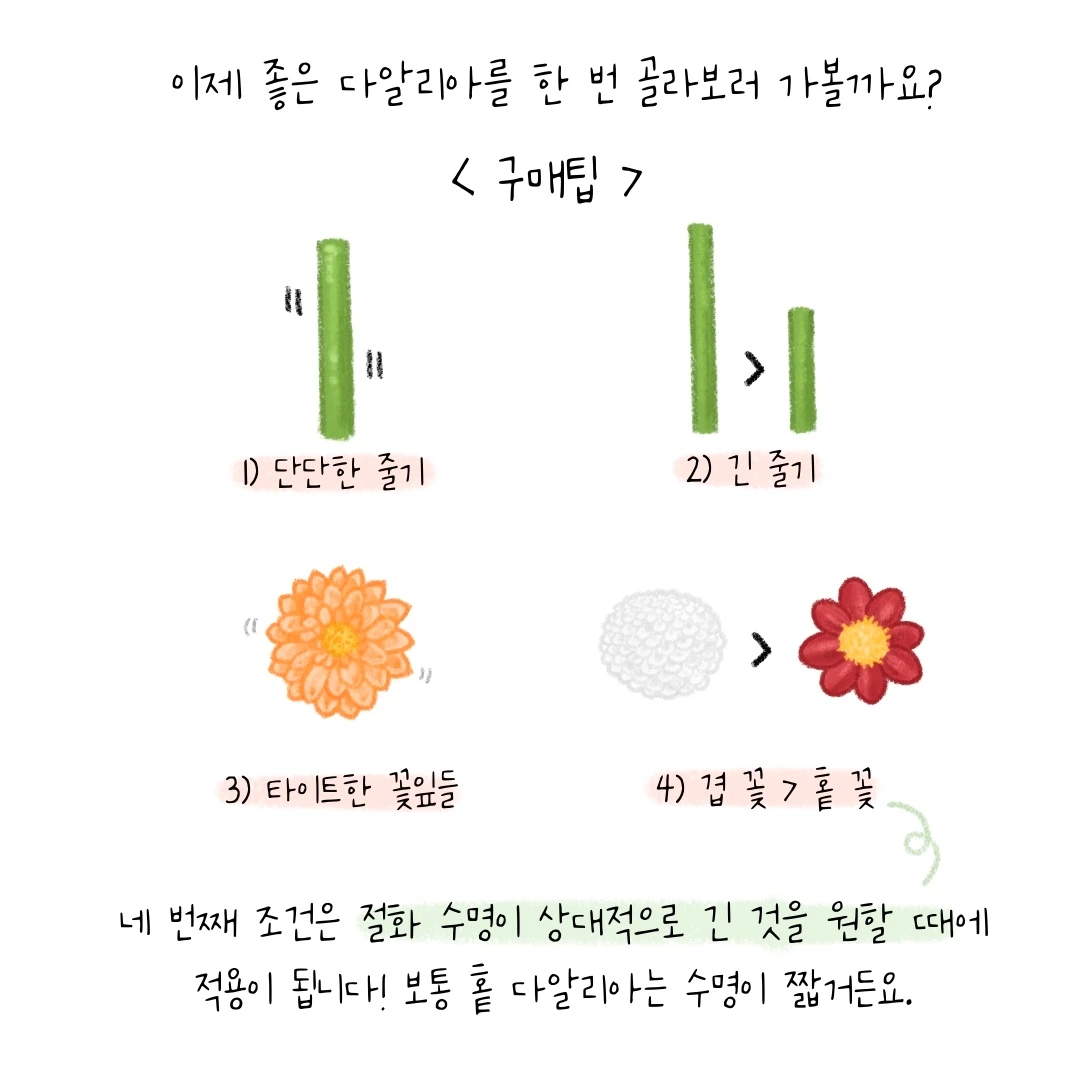 꽃시장에 방문하는 손님들은 향기 좋은 다알리아를