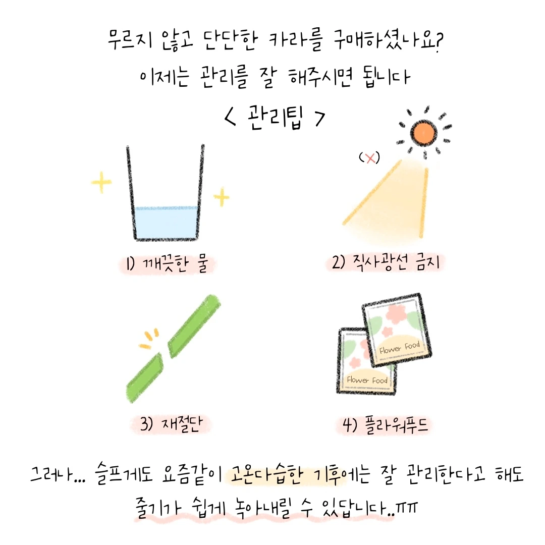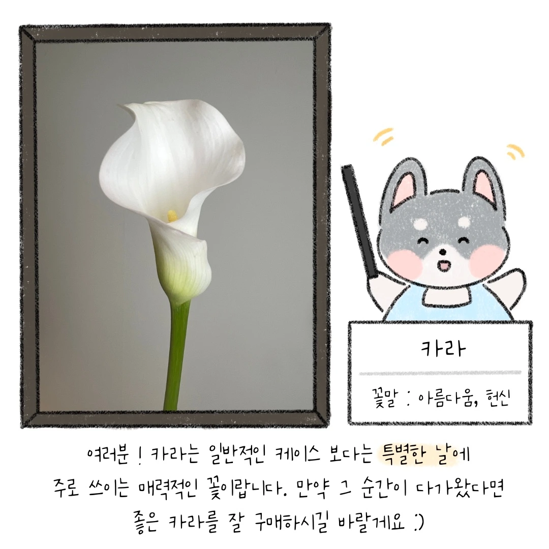 꽃시장에서 카라는 꽤나 비싼 꽃으로 통합니다