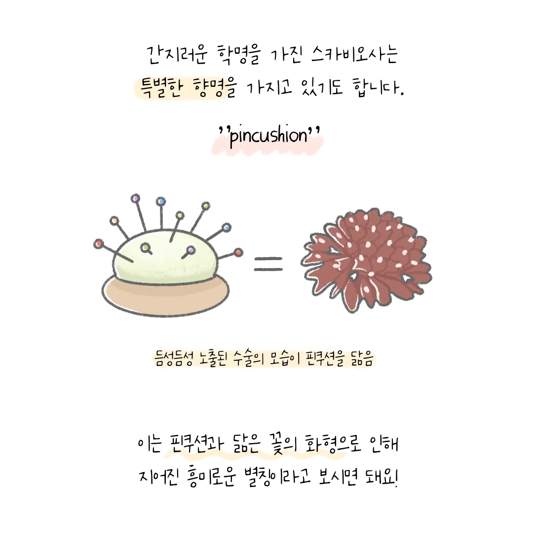 스카비오사와 관련된 코멘트는 이쯤에서 마무리 짓도록 하겠습니다. 이외에도 다양한 정보와 지식들이 있긴 한데, 아직까지 제대로 갖춰진 느낌이 아닌 것 같아서 따로 정리하지는 않을게요.