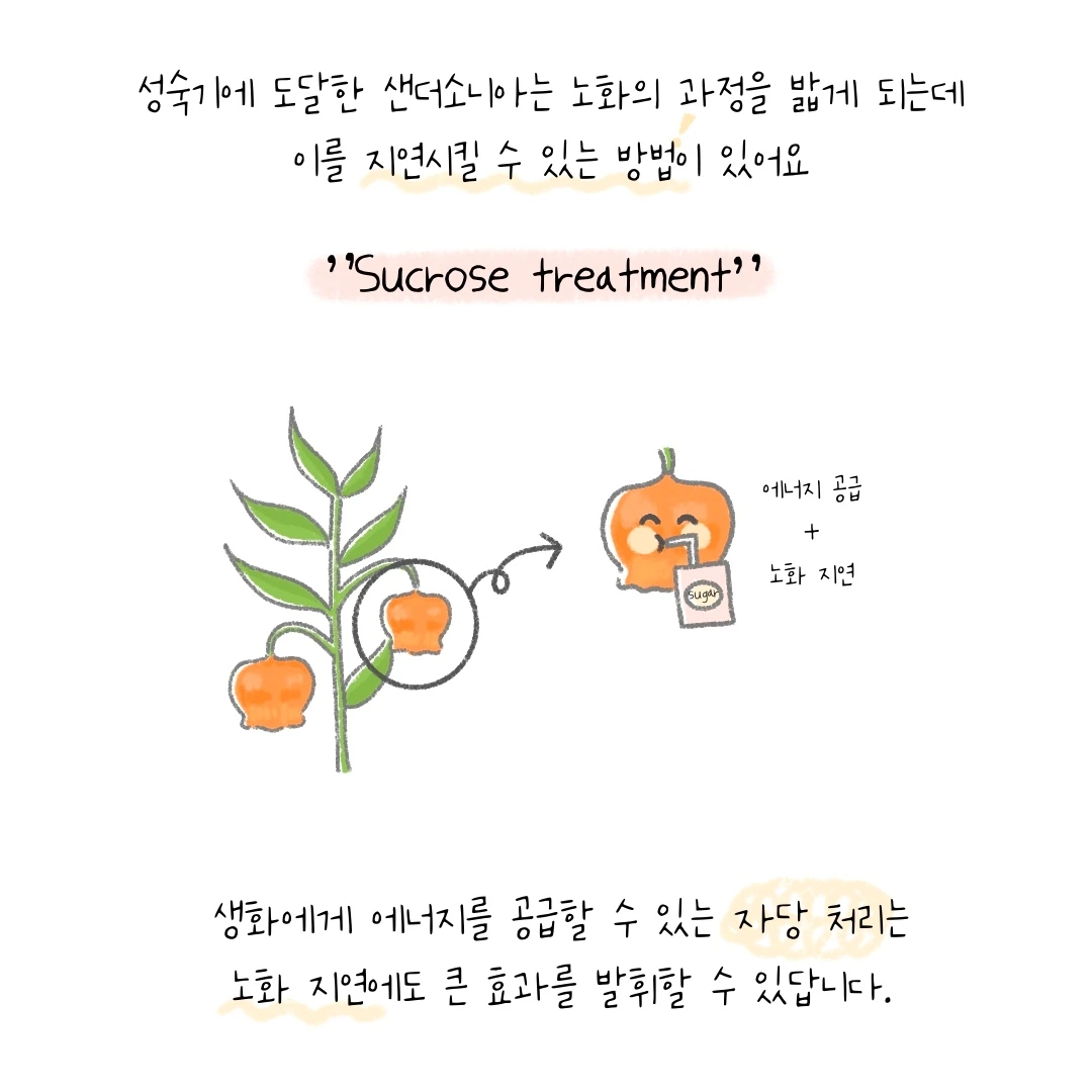 좋은 컨디션의 샌더소니아는 위쪽에 미성숙한 꽃들, 아래쪽에 막 성숙해진 꽃들이 달려있는 상태입니다. 이처럼 완벽한 타이밍에 수확된 샌더소니아를 구매한다면 일주일 이상 건강하고 아름다운 꽃을 즐길 수 있을 거예요.