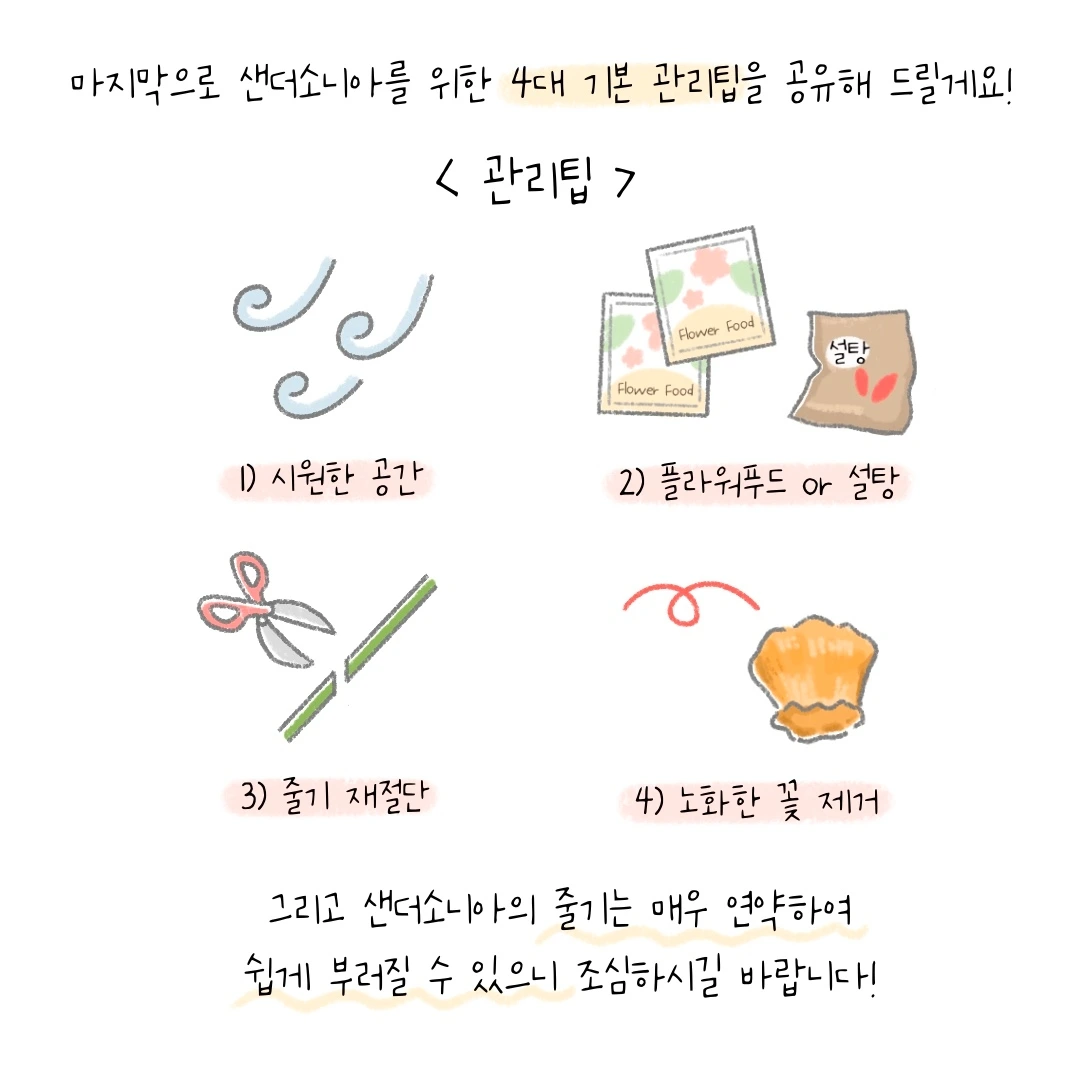 요즘은 꽃시장에서 찾아보기가 힘들겠지만 나중에 샌더소니아 시즌이 도래했을 때 꼭 구매해 보세요. 정말 아름답고 매력적인 꽃이라서 후회하지 않을 거예요. 특히 연인에게 서프라이즈 선물로 준다면 100% 성공할 거라고 확언할게요.