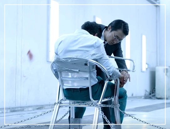 모습으로 등장하는 조상무가 의자에 묶어 놓은