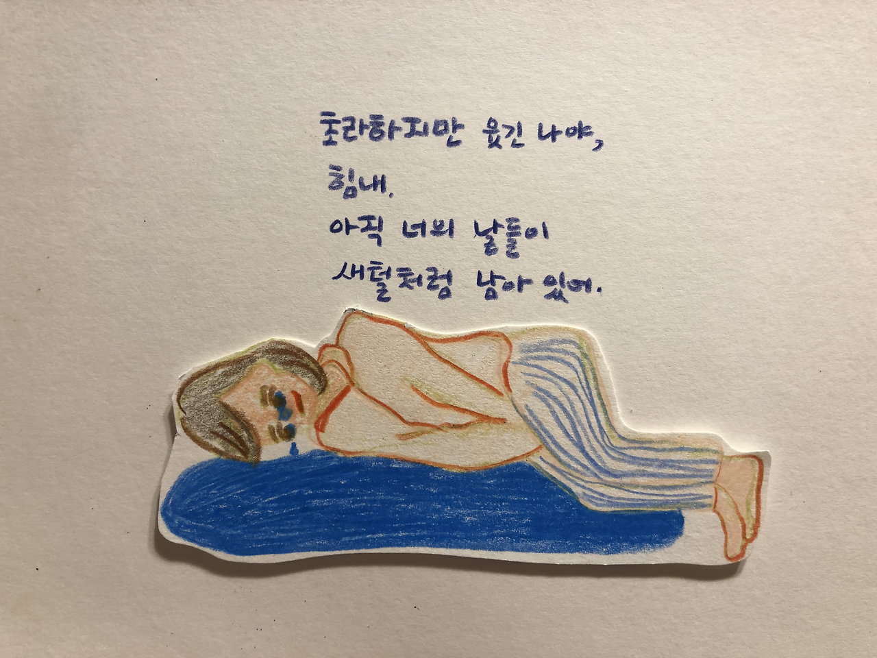 오늘 대학 때 선배를 만나, 최근에 번역하셨다는 책을 한 권 받아 든 나는, 자연스럽게 그 후배 작가님의 근황을 전해 들었다. 그 참에 내 자존감 밑바닥에 거름 삼아 깔아 둔 저 기억을 꺼내어 얘기해줬더니 선배도 얼마나 재밌다고 웃던지. 깔깔깔 웃으며 “저 너무 모질이 같죠.” 얘기를 하던 내 눈에서 한 개 영롱한 눈물방울이 떨어지고 있었다. “야, 너 지금 울어?” 둘 다 더 크게 깔깔깔 웃게 되었는데, 이번에는 고인 눈물이 주르륵 뺨을 타고 내렸다. 아, 소설을 못 써서, 나는 나를 이렇게나 부끄러워하고 있구나. 그러고 웃고 있는 내가 너무 수치스러웠다. ㅋㅋㅋ