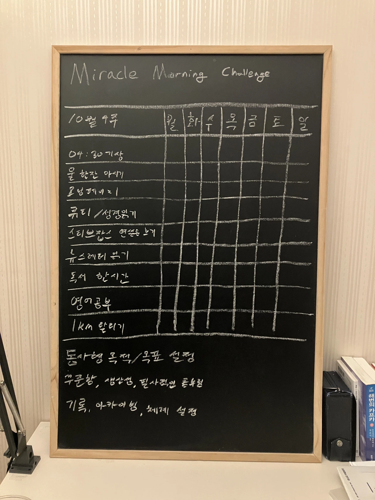 이렇게는 살 수 없다. 생산성을 길러야 한다. 삶의 목적을 되찾기 위한 전반적인 정비가 필요하다. 우선 생산성을 길러야 한다. 일상의 관성과 매너리즘에서 벗어나야 한다. 다시금 목적과 체계를 되찾기 위한 필사적이고 처절한 몸부림이다. 세상에 내로라하는 생산적이고 부지런한 사람들은 다 해봤다는 '미라클 모닝'을 나도 한번 해보려 한다.