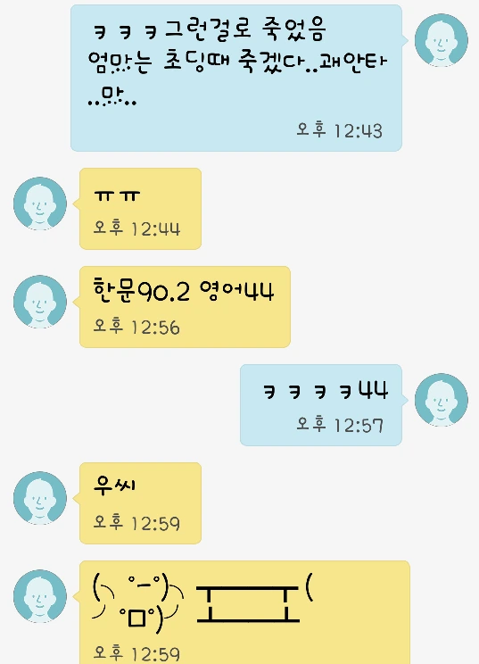 사실 엄마도 중딩때 60명 중 53등이었옹..