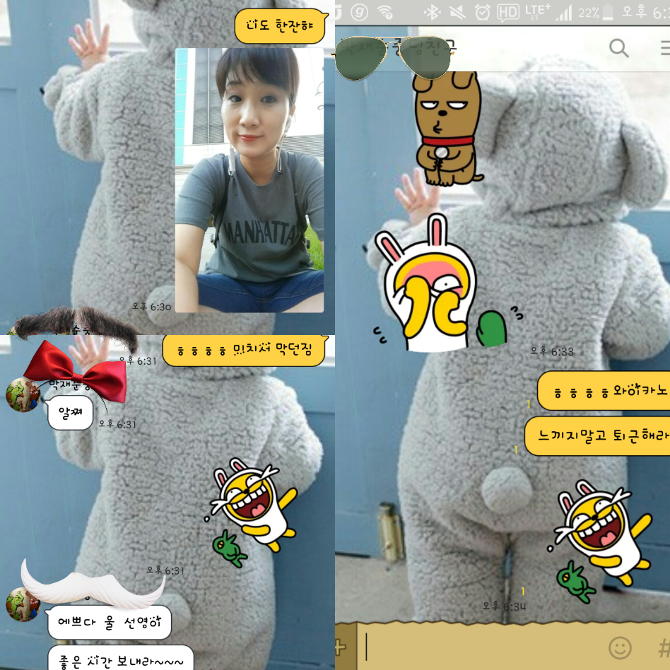 나의 카카오톡 대문사진이 바뀔 때마다 톡을 하는 나의 스토커 친구 , 중딩 동창 친구.