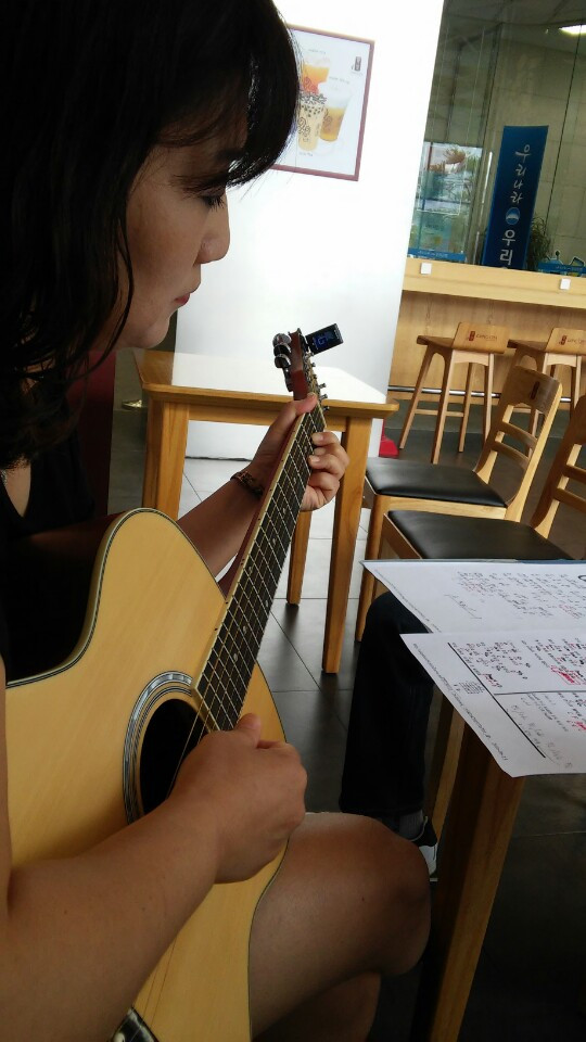 어떤 곡을 할까 서른곡 이상은 매일 쳐보고 불러보고...2주전부터 나의 작은 손가락은 하루에 꼬박 3시간을 기타와 씨름한 덕분에 왼쪽 손가락은 발바닥의 살을 닮아 있었다.