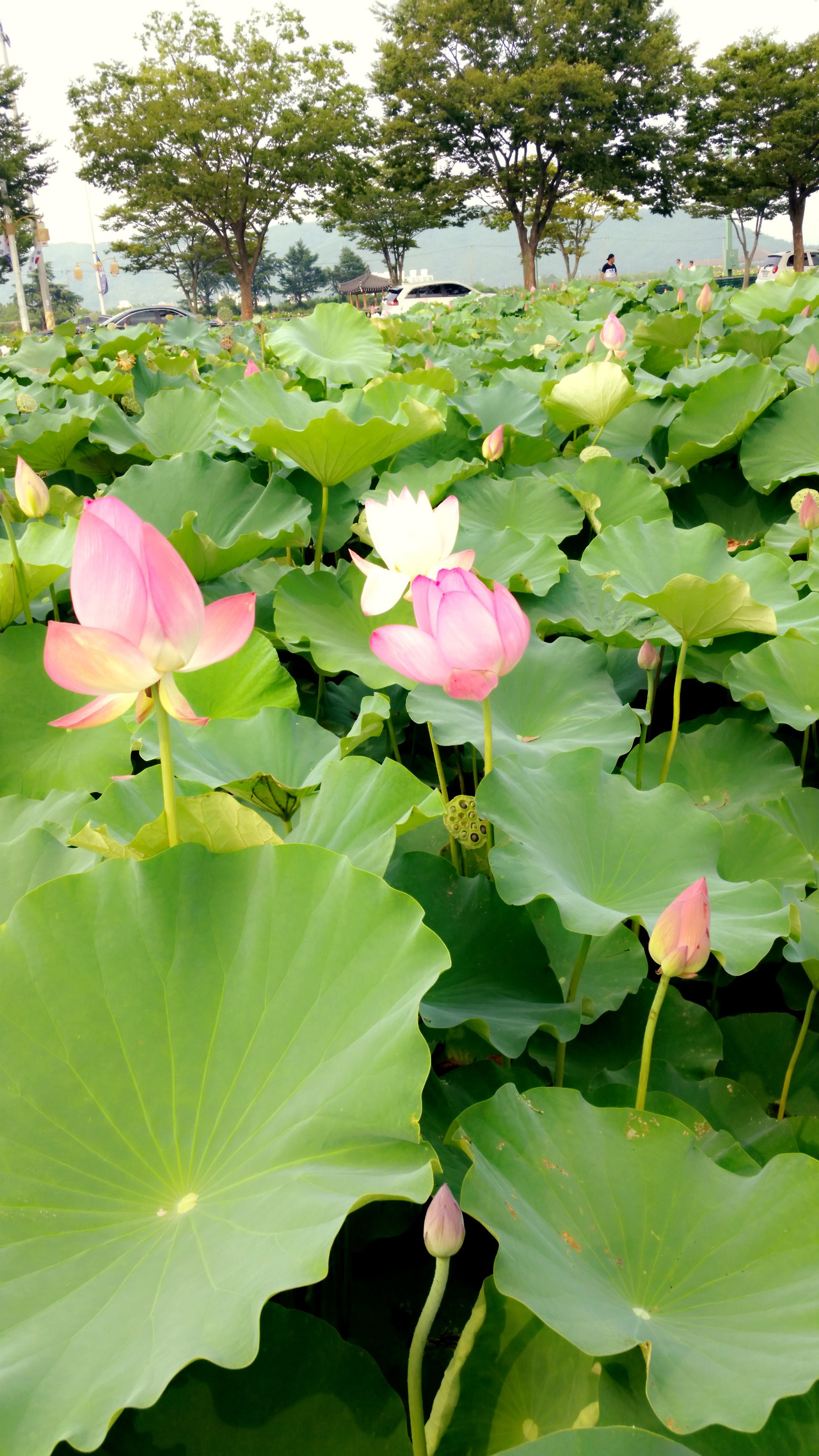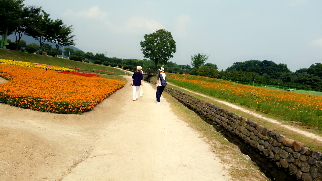 해는 구름 뒤에서 메롱메롱 모드로 우리를 헷갈리게 했고 우리는 습한 지열을 받으며 꽃 길과 연꽃의 군락을 지났다.