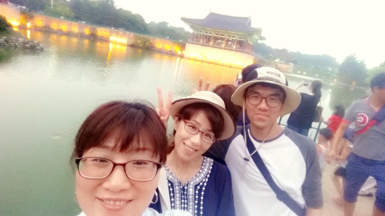 아직은 해가 밝았고 7시30분에나 야경을 감상할 수 있다고 했고 우리는 안압지를 돌면서 수다를 떨었다.