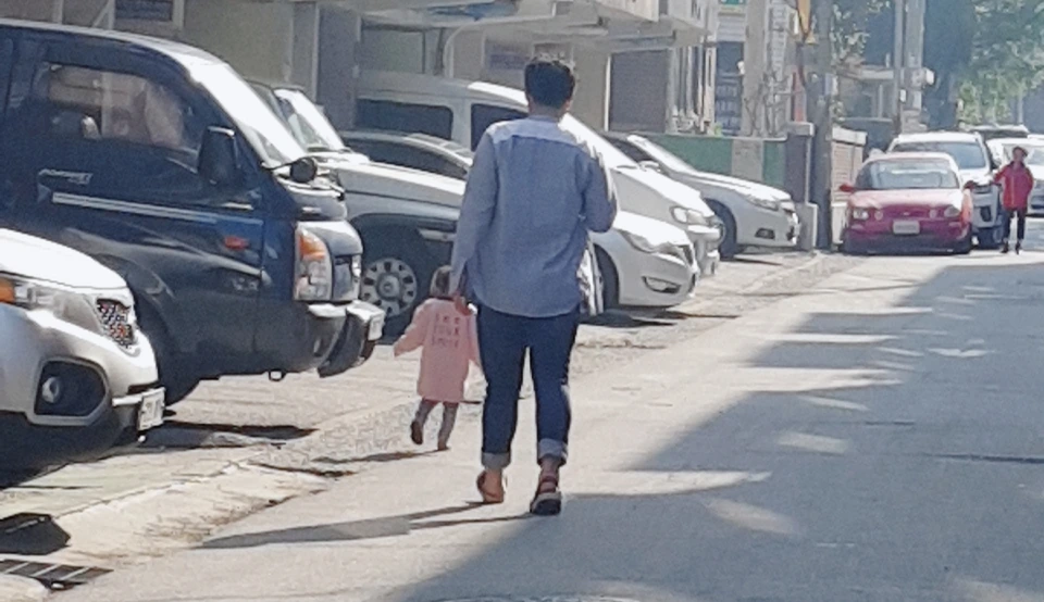 어린 형제가 옆을 지나간다.