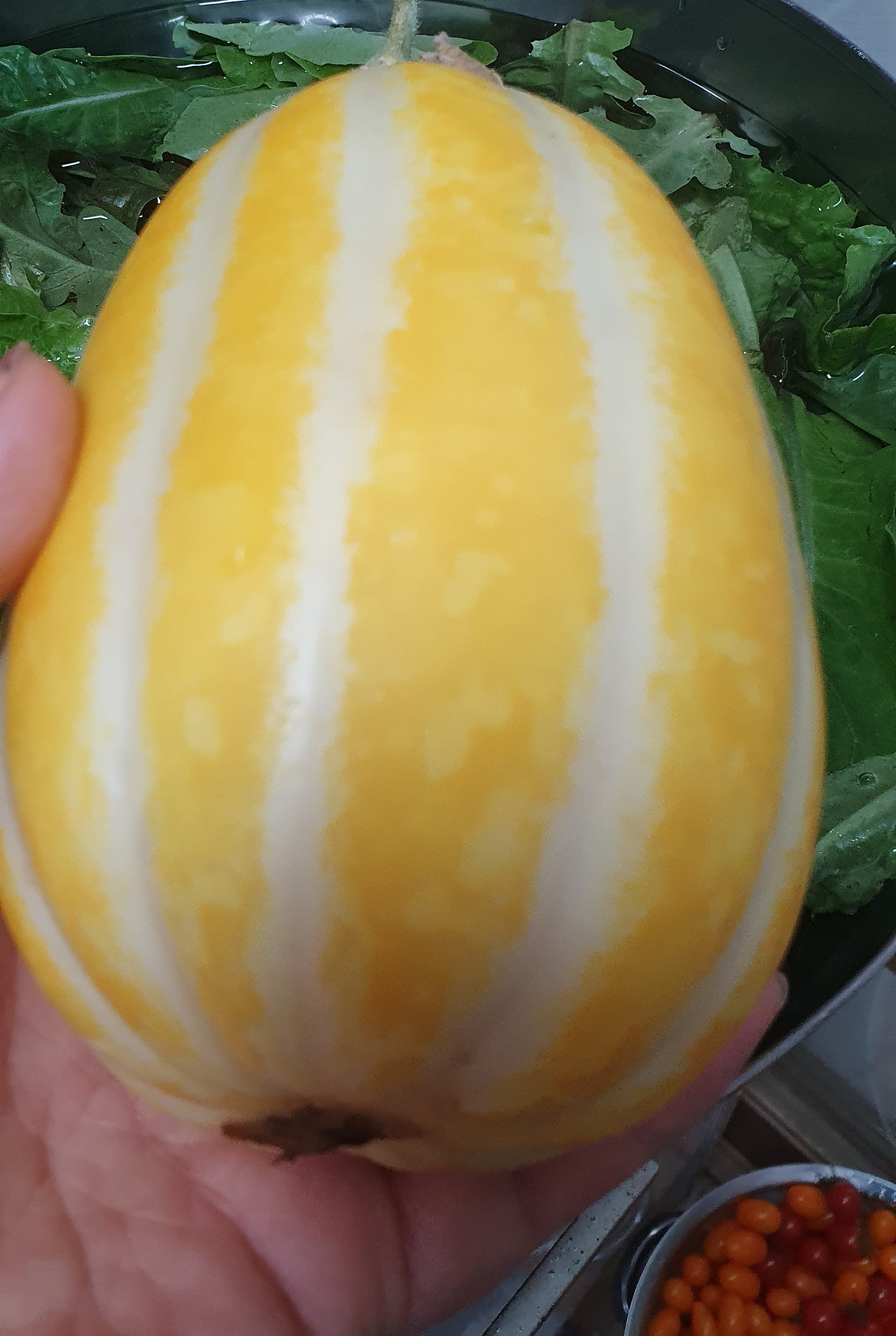 노란빛의 참외는 올해 처음 심었다. 7월 말이 되어도 제대로 자라지 않다가 텃밭의 작물들이 정리에 들어갈 8월 즈음에 주렁주렁, 쑥쑥 자랐다. 참외 표면에 중년의 수염을 닮은 까슬한 솜털이 있다는 것도 이번에 처음 알았다. 맛은 또 목구멍이 따끔거릴 정도로 달다.