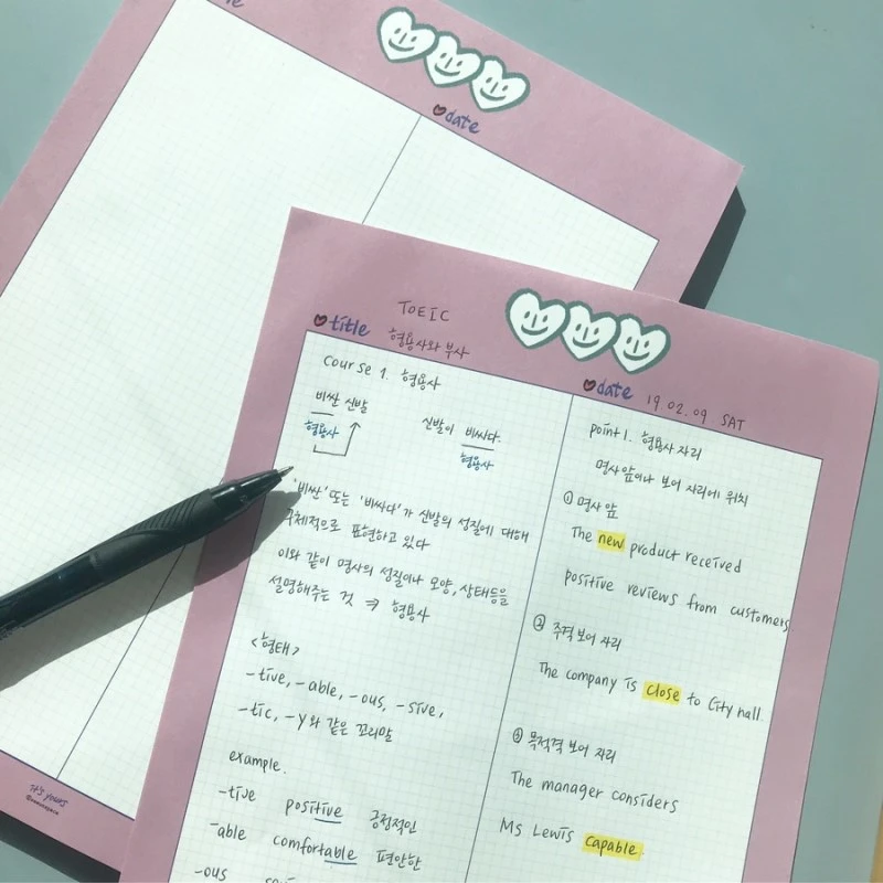 그리고 첫 회사를 퇴사한 후, ‘본격적으로 해볼까.’ 싶어 캘리그라피 외에도 표정 스티커라는 이름으로 다양한 문구를 제작했다. 유행에 따라 B5 노트패드를 만들어보기도 했고 마스킹테이프도 만들어봤다. 유행에 따라간다는 것은 생각보다 많은 트렌드 조사가 필요했고 그만큼 재고가 생긴다는 부담감이 있었다. 게다가 ‘내가 쓰고 싶은 문구를 만듭니다.’라는 내 취미 생활의 신조와도 맞지 않았다.