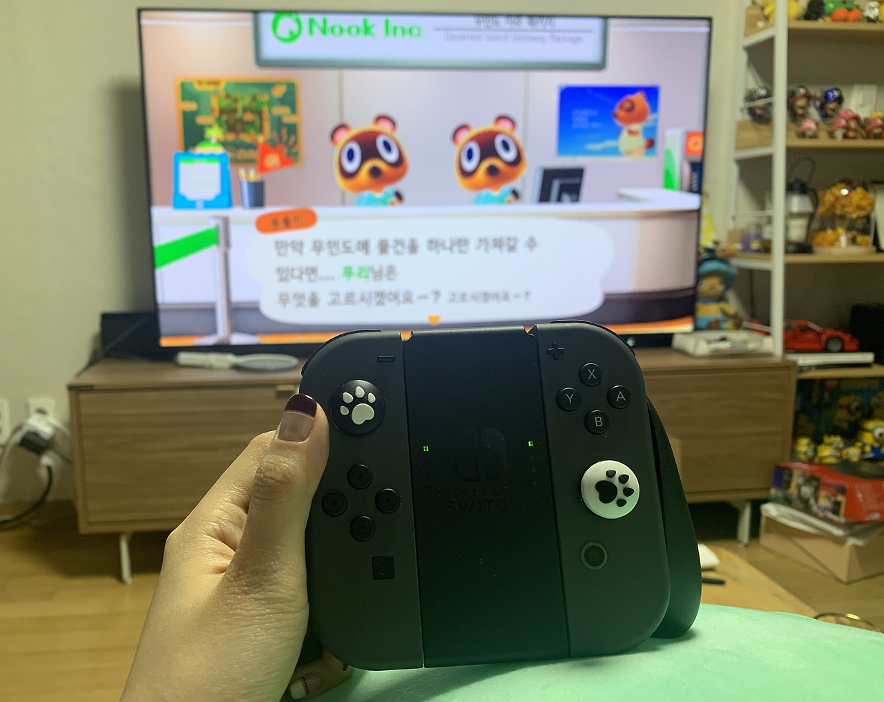 그 날부터 하루도 빼놓지 않고 게임을 플레이했다. 내 생애 첫 번째 게임기. 사실 컴퓨터 게임, 휴대폰 게임 외에는 콘솔 게임을 해야지!라는 생각은 없었던 것 같다. 이번에 유독 게임기를 갖고 싶었던 이유는 이 게임기가 나오자마자 우리나라에서도 유행이 된 모여라, 동물의 숲을 해보고 싶었기 때문인데 참 신기한 게 시작 하자마자 그 날부터 하루도 빠짐없이 매일 게임을 했다. 신랑에게 ‘겨울에 귤 까먹으며 모동숲하는 게 나의 꿈이다.’했는데 진짜 이룰 줄이야.