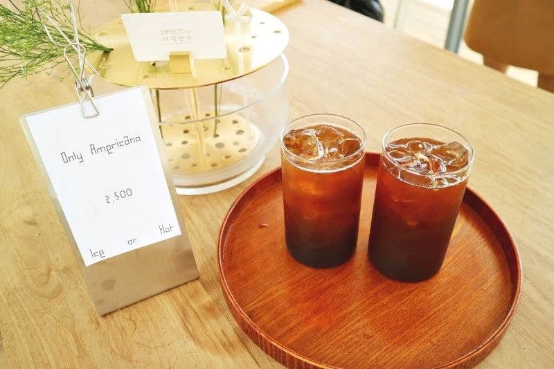 사장님이 내어준 웰컴 드링크 아이스 아메리카노. 서림연가의 분위기 때문인지 더 맛있는 느낌. 사장님이 요리 전공을 하셨다는데 그래서인가, 커피 한 잔도 맛있다.