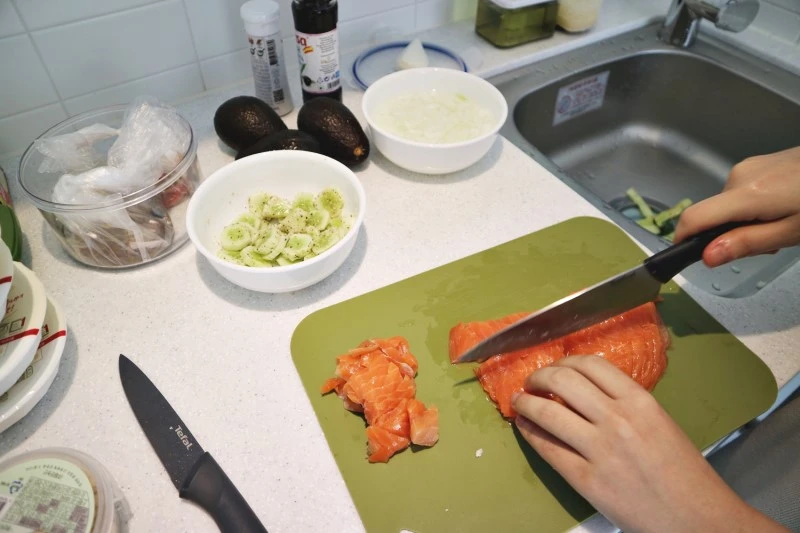 방에 들어오니 친구가 주섬주섬 꺼내는 다양한 요리 재료들. 사실 떠나기 전에 점심식사를 어떻게 해야하나, 고민했다. 둘다 완전 초행길이라 그 근처에 음식점이 있나, 하고 알아보다가 친구가 하와이안 음식이라는 “포케”를 만들어 먹자고 솔깃한 제안을 해왔다. 사실 여행 가면 집에선 안 하는 요리도 한 번 해보고 싶고 살아보고도 싶은 법.