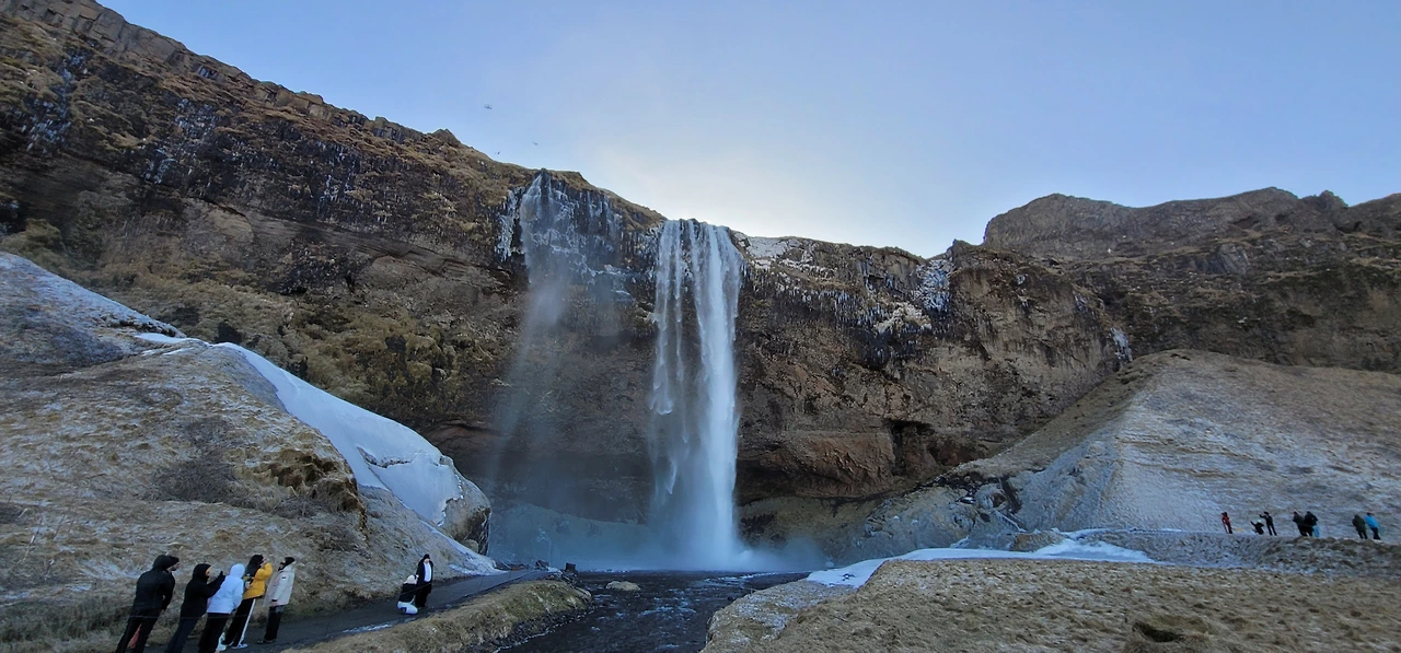 거대한 강풍과 한파로 깬 우리는 계속 아이슬란드 링 로드의 남쪽을 따라 여행했다. 날씨는 청명했고, 어제 모두에게 너무 추운 하루였던 탓인지 약간 으슬으슬해지기 시작했다. 가는 길에는 아름다운 폭포들이 군데군데 보였는데, 높은 곳에서 떨어지는 수량이 상당해 신기하다는 생각을 했다. 저 위에는 고원들이 있고, 그곳에서 계속 물들이 모이겠지. 고원으로 올라가는 건 4륜구동 차 일부만, 일부 도로에 한해 올라갈 수가 있고 이 또한 대부분 눈 등으로 겨울에는 접근이 막혀 있었다. 우리는 애초에 4륜구동 차가 아니므로 오프로드 진입은 불가했는데, 그나마 타이어가 스노우타이어로 미끄러워 보이는 곳도 많이 미끌리진 않아서 다행이라는 생각을 했다.