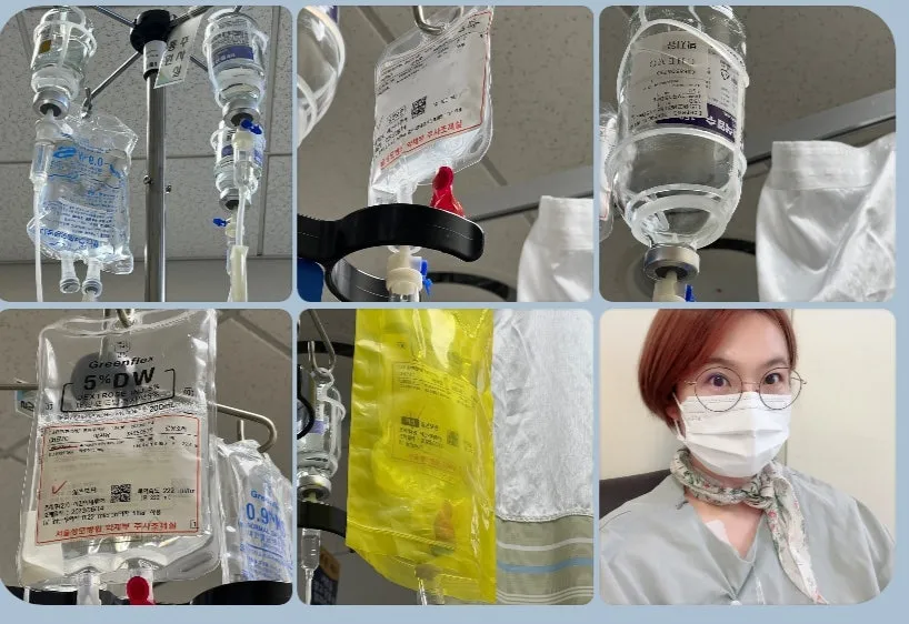 많이 긴장해서 잠도 잘 못 잤는데 다행히 항암 주사 맞으면서 특별한 부작용도 없었고 먹는 것도 잘 먹었다.