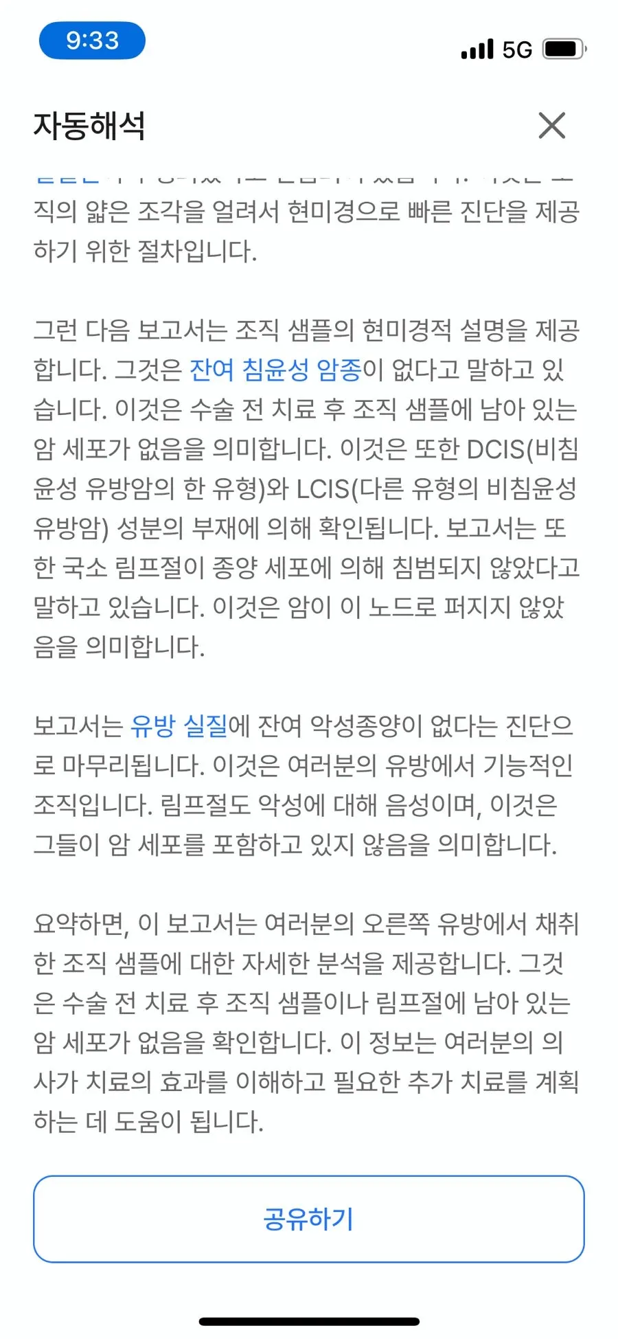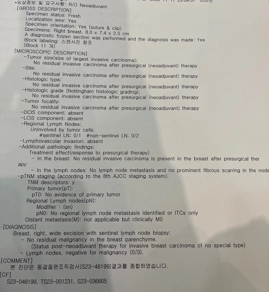 수술 후 최종 조직검사 결과지가 이미 나와있었다.