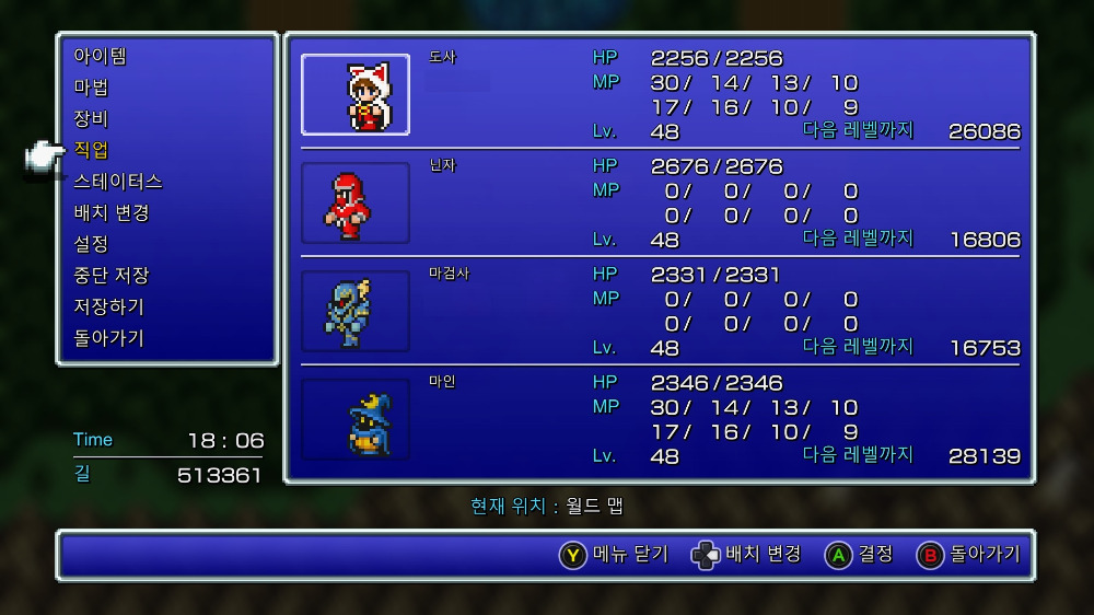 처음으로 이야기할 게임은 파이널 판타지 3이다. 순서 상으로 말하면 1과 2를 먼저 말하는 것이 맞겠지만 1, 2에 대해서는 달리 할 말이 없어서 그냥 건너뛰었다. 1에서 기억에 남는 부분이라면 스토리에서의 반전이 인상적이었다는 점, 2에서 기억에 남는 부분이라면 스토리텔링은 괜찮았으나 캐릭터의 육성 방식이 다소 이상했다는 점 정도뿐이었다. 그래서 조금 더 이야기할 거리가 많은 3부터 이야기를 시작하는 것이 좋을 것 같았다.