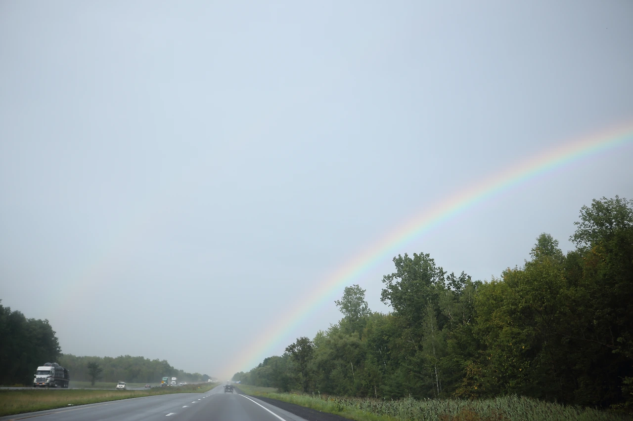 돼지국밥 세리머니로 토론토와 뜨거운 안녕을 하고 몬트리올로 향했다. 마지막 여섯 시간의 운전. 이것을 마지막으로 나는 한동안 운전대를 잡지 않아도 된다. 마지막의 순간 긴장이 풀었을 때 사고가 나는 경우가 많음으로 끝까지 최선을 다할 것은 항상 중요하다. 긴장하라는 듯이 몬트리올에 다 다랐을때쯤 갑자기 억수같이 비가 쏟아졌다. 횡단 여행 중에 많은 소나기를 만났지만 이번 소나기는 정말 한 치 앞을 볼 수가 없을 정도로 많은 비가 내렸다. 시야 확보가 되지 않으니 도저히 앞으로 나아갈 수가 없어 비상등을 켜고 차를 도로 한쪽에 세웠다. 비 때문에 갓길에 차를 세운 건 여행 중 이번이 처음이었다. 차를 세운 뒤로 약 10여분 비가 지속되더니 언제 그랬냐는 듯이 곧 사그라들었다. 아메리카는 마지막까지 예측할 수 없는 곳이구나. 신기한 경험이라고 헛웃음을 치며 다시 출발했는데, 그때 내 눈앞에 너무나도 아름다운 무지개가 펼쳐졌다. 그 무지개가 얼마나 선명하고 거대했는지, 마치 지난 20여 일간의 여정이 이 무지개를 보기 위해 달려온 것 같은 기분이 들었다. 한 치 앞을 볼 수 없을 만큼 억수로 쏟아진 소나기 다음에 만난 무지개여서 더 좋았는지도 모른다.