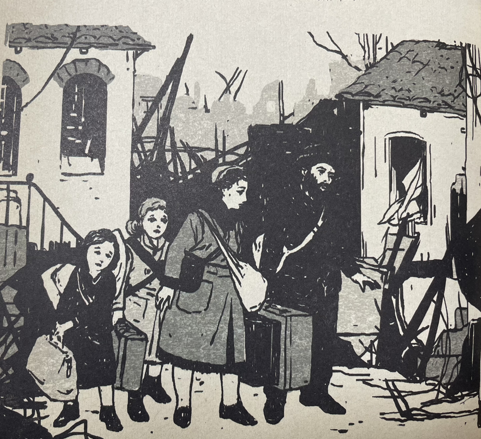 전쟁으로 인해 집을 떠나기 전, 밀라의 아빠는 사과나무 앞 밀라의 모습을 사진으로 담았습니다. 그런데 사진 속 밀라의 표정에는 잿빛 구름이 가득해요. 너무 어려서 잘 기억나지는 않는다고 하면서도 그날의 그림자가 유난히도 길었다는 것만은 마음에 남아있는 밀라였습니다.