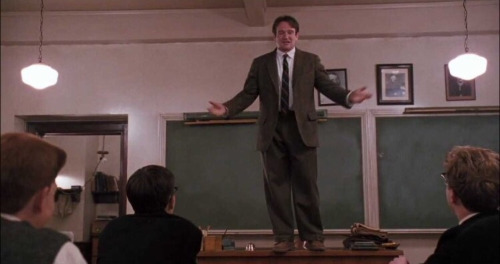 “이 위에 선 이유는 사물을 다른 각도에서 보려는 거야. 이 위에서 보면 세상이 무척 다르게 보이지. 어떤 사실을 안다고 생각할 땐 그것을 다른 시각에서 봐라. 틀리고 바보 같은 일일 지라도 시도를 해봐야 해. 책을 읽을 때 저자의 생각만 고려하지 말고 너희들의 생각도 고려해 보도록 해. 너희들의 목소리를 찾을 수 있도록 투쟁해야 해. 늦게 시작할수록 찾기가 더 힘들 것이다.”