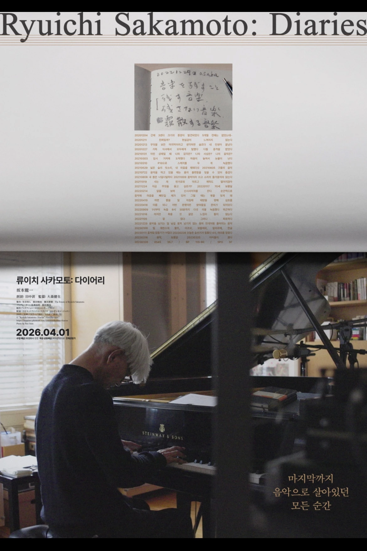 한 예술가가 세상과의 작별을 하기까지의 3년 6개월을 담은 다큐멘터리 영화를 보고 온 밤, 다시 책을 꺼내 들었다. 사실 처음 책을 보았던 작년에는 끝까지 읽지 못했다. 제목이 주는 슬픔에 압도되었기 때문이다. 그동안 나는 익숙한 영화 음악은 알고 있으면서도 정작 그가 누구인지 인지하지 못했다. 또한 영화를 보러 간다고 할 때서야 큰 딸이 그의 음악 플레이리스트로 마음의 평화를 찾을 만큼 좋아하는 영화 음악가라는 것도 알게 되었다. 그 모두를 영영 모르게 되지 않아서 다행이라는 생각이 든다. 물론 다른 이들처럼 생전에 그를 알았더라면 더 좋았겠지만 말이다.