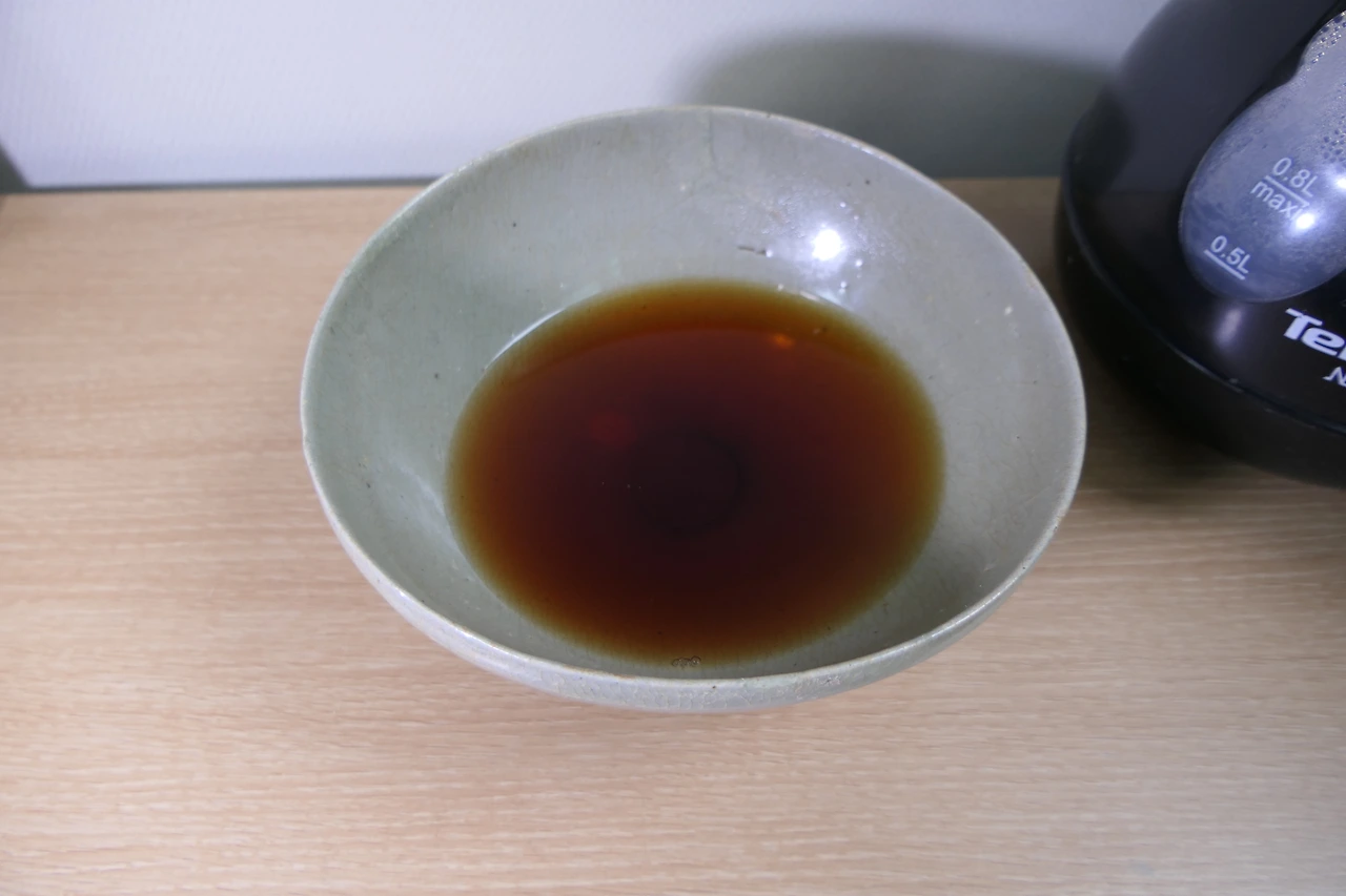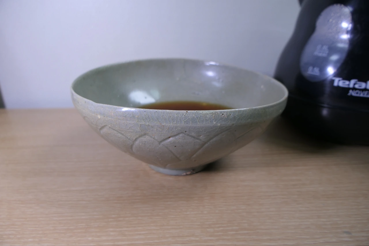 실컷 감상을 하고 보니, 이제 이 대접으로 마시는 차는 어떤 맛일지 궁금해졌다. 이걸로 차를 마시면 고려시대의 그 정취를 과연 느낄 수 있을까? 설레는 마음을 다잡고, 사용하기 전에 먼저 그릇을 씻었다. 주방세제를 쓰면 왠지 유약이 벗겨질 것만 같아서 손을 덜덜 떨어가며 물로 꼼꼼히 씻었다. 유약이 안 묻은 밑바닥이 황토색인 게 신경쓰였지만, 역시 도자기는 도자기인지라 흙이 묻어나오는 대참사는 일어나지 않았다. 설레는 마음으로 물을 한 모금 따라 마셔보았다. 고려의 신선이 된 기분...은커녕 아직 흙냄새가 나고 있었다. 그렇게 다시 씻기를 세 번. 마침내 흙내가 가셨다.