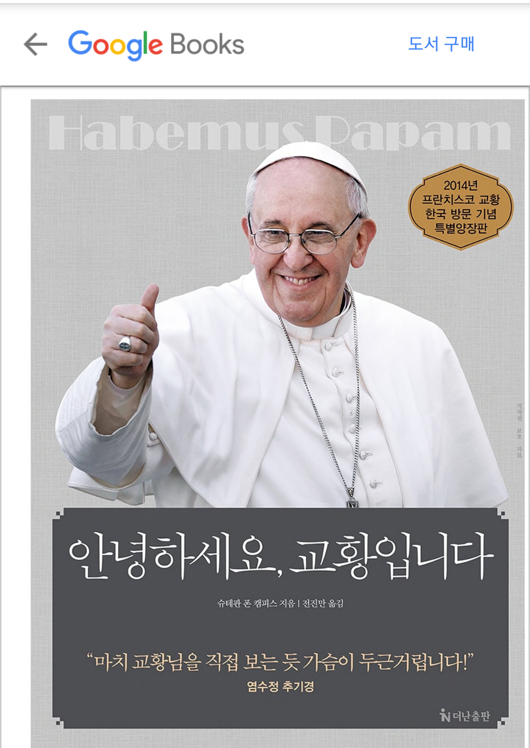 책은 교황이 직접 쓴 자서전이기보다 교황을 관찰하고 과거 이야기를 들어서 쓴 약간 이야기책이다. 그래서인지 처음에 읽다 보면 미담 모음을 읽는듯하다. 조금 성격이 비뚤어졌는지 처음에 미담 모음집을 읽을 때는 뭐야 이거 그냥 좋은 이야기만 모아둔 거 아니야 생각했다.
