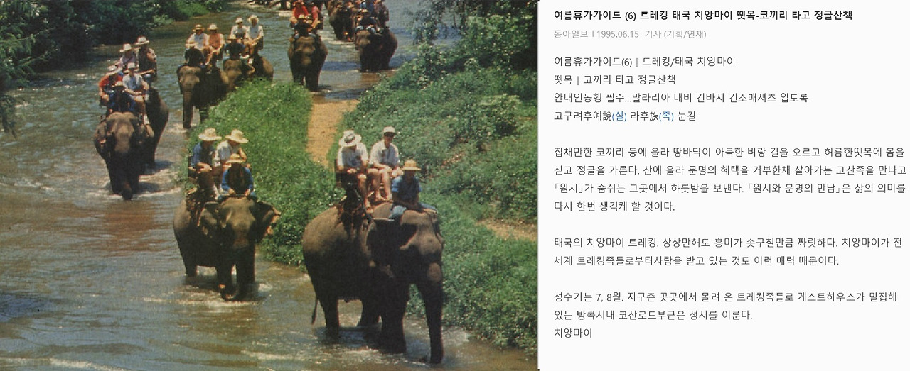 그렇게 정신이 혼미한 와중에도 '치앙마이에 점점 가까워지고 있다'는 사실이 기분 좋았다. 방콕에 세 번째인가 갔을 무렵, 지인들에게서 치앙마이라는 곳이 그렇게 좋다는 이야기를 들었다. 태국 북부로 올라가면 방콕과는 전혀 다른 분위기인데 참 괜찮다고, 치앙마이라는 곳을 한 번 가보라고 했다. 이야기로만 전해 들은 태국 북부는 트레킹과 코끼리, 고산지역의 소수부족, 범접할 수 없는 정글 숲 같은 것들을 연상케 했다. 상상 속에서 나는 어마어마하게 덥고 습한 정글 숲을 마구 헤쳐나갔다. 며칠간 씻지도 못하고.. 옷은 땀에 푹 절고.. 얼굴은 숯검댕이 된 채로.. 내게 태국 북부와 치앙마이는 그렇게 머나먼 원시의 세계로 남아버렸다.