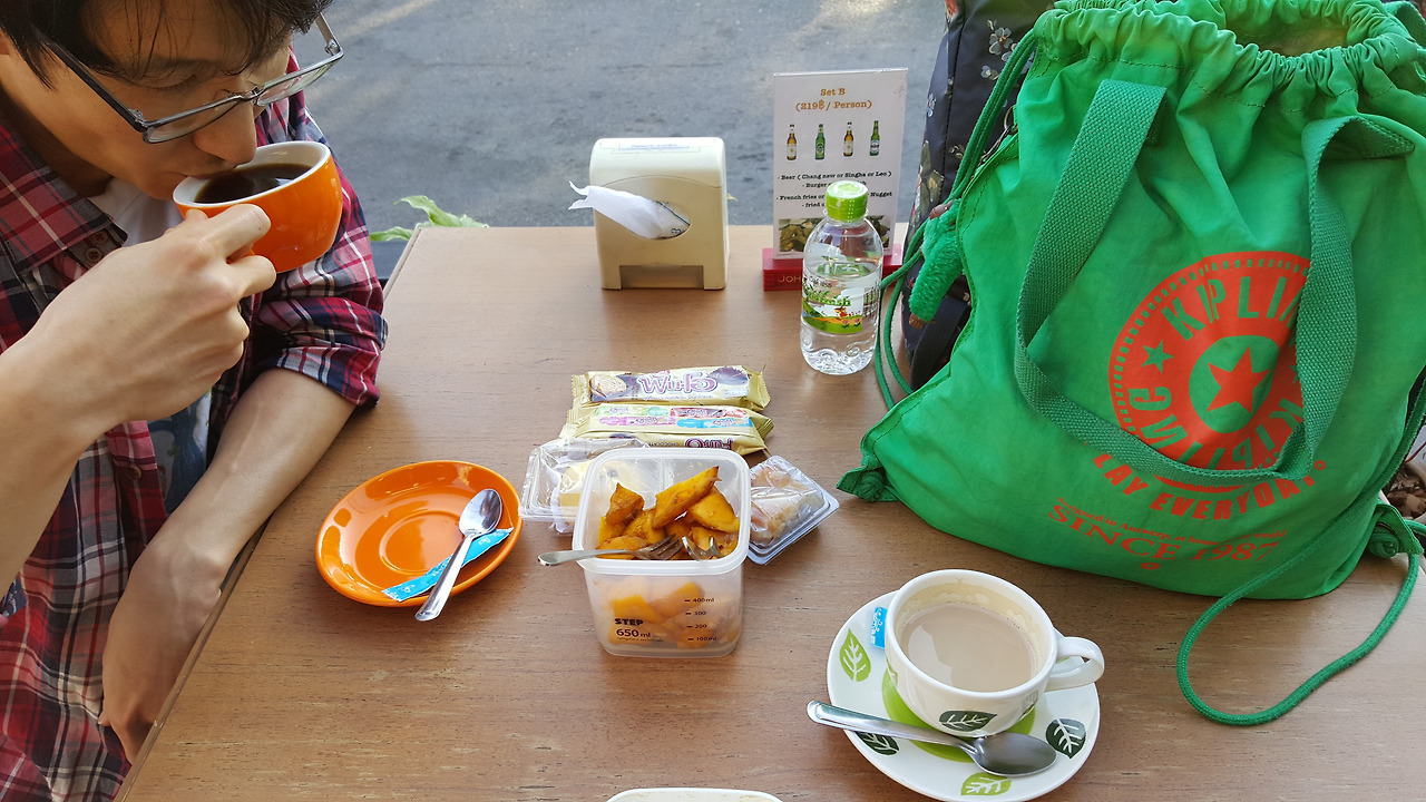 태봉은 차마 아니라고 말은 못 하고 '그건 대체 어따 쓰는 물건인고' 하는 눈빛만 보낼 뿐이었다. 흥, 두고 보아라. 나의 세심함에 감탄하게 될 테니. 나는 아침에 먹고 남은 망고와 잭 프룻을 잘라 플라스틱 용기에 담았다. 여행 내내 이어진 우리의 열대 과일 사랑은 이 플라스틱 통이 없었으면 불가능했을 것이다. 뚜껑은 과일 깎는 접시로, 통은 과일을 담거나 쟁여놓는 그릇으로 참으로 유용하게 쓰였다. 여행 말미, 태봉은 과연 이번 여행의 잇 아이템으로 플라스틱 통을 꼽았다.