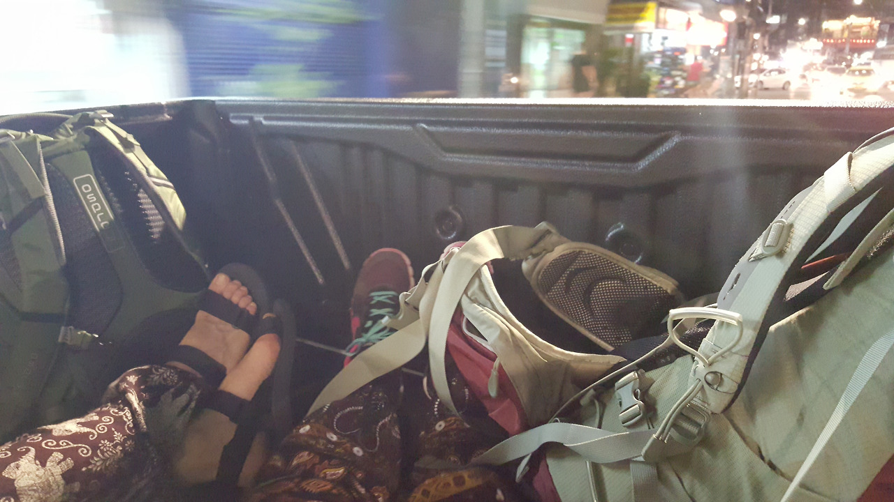 버스 터미널 가는 길. 여행사에서는 숙소로 픽업 차량이 갈 거라고 했는데, 과연 짐칸에 픽업되었다.