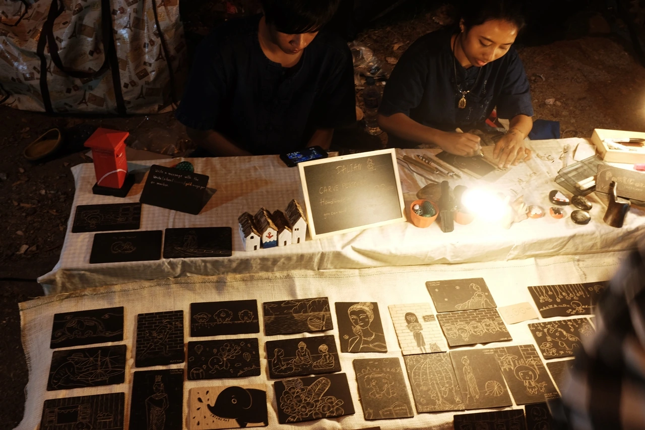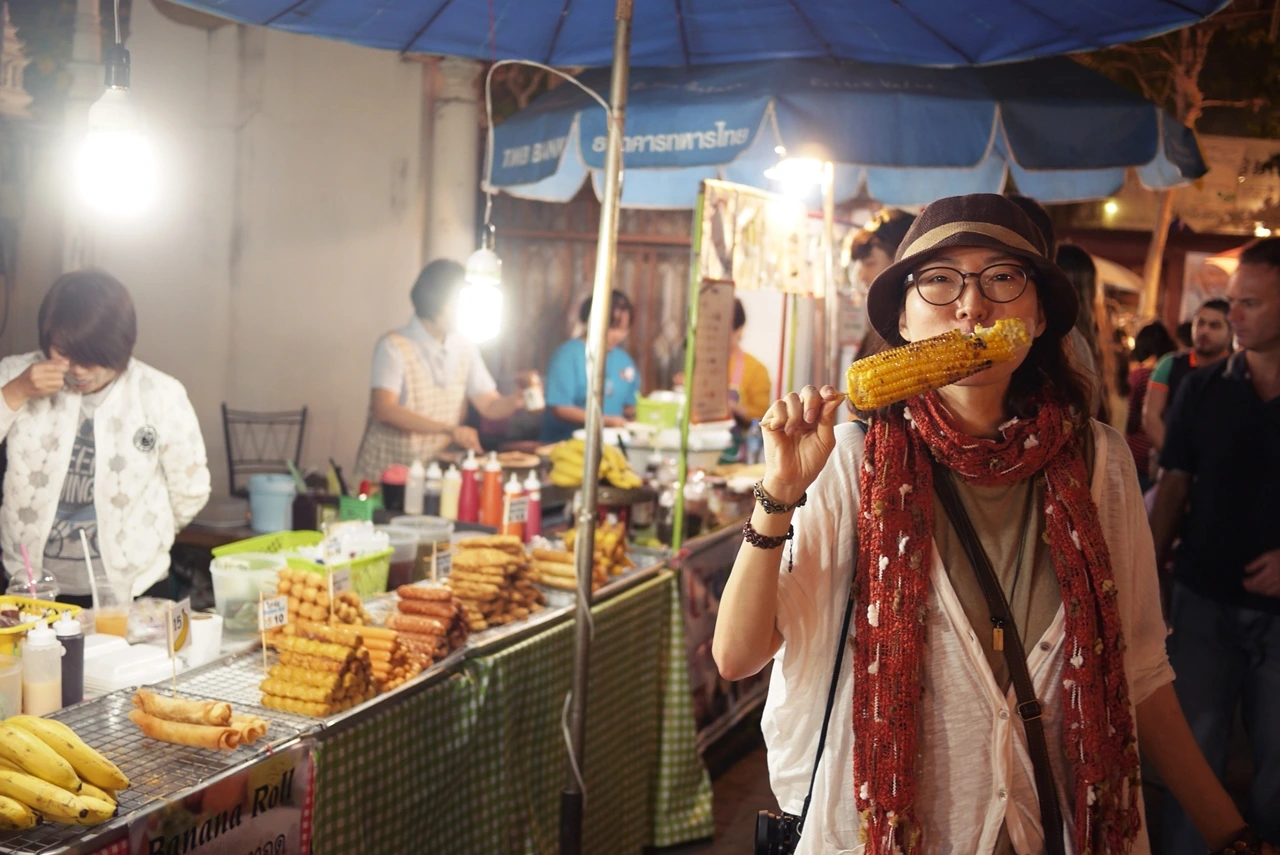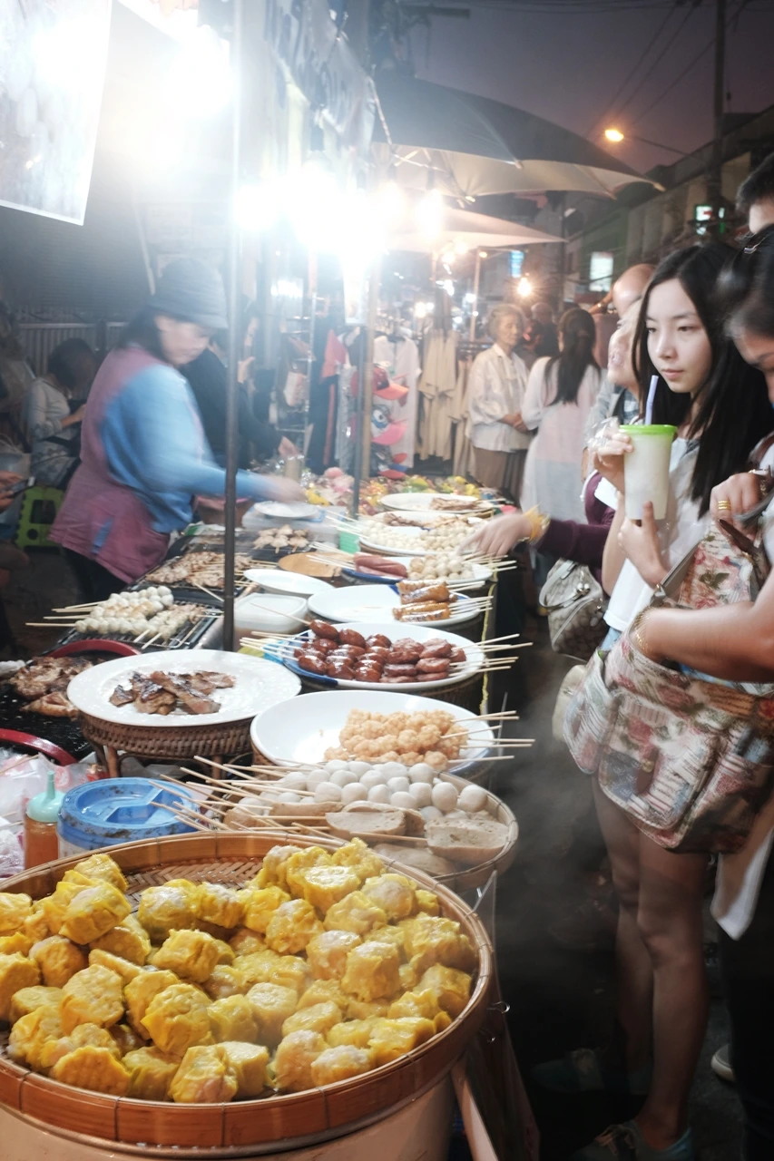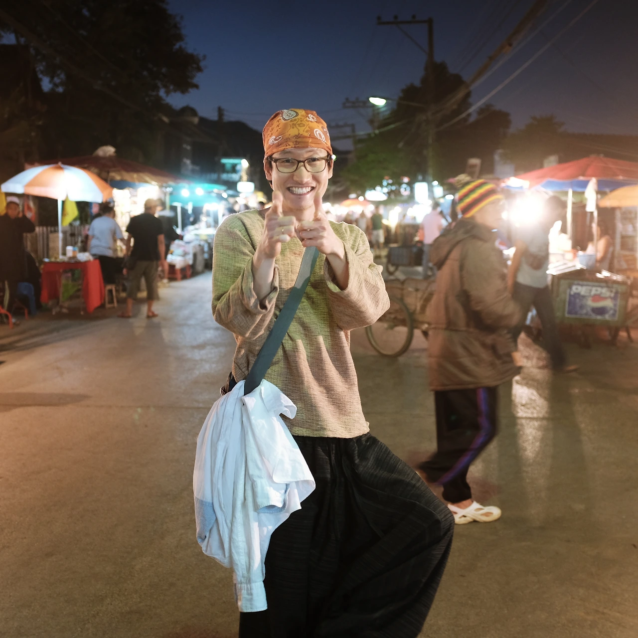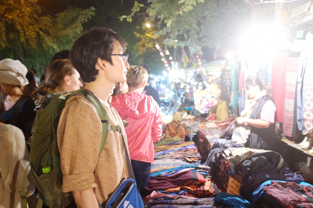치앙마이의 주말 마켓은 내가 가본 어느 시장에 비할 바가 아니었다. 이곳만큼 다채로운 수공예품을 파는 곳을 나는 본 적이 없다. 하나같이 독특하고 저마다의 색감과 손재주가 담겨 있는 물건들이라 눈을 뗄 수가 없었다. 큰 길가는 물론이고 골목골목 빼곡히 채운 노점과 먹거리들 사이로 몇 시간을 걸어도 지루하지 않았다. 그리고 태봉은 마침내! 한국에서 들고 온 체크무늬 남방과 면바지를 벗어버리고 여행자스러운 복장으로 환골탈태에 성공했다. 본인도 엄청 만족스러운지 계속 옷을 쓸어보고 만져보고, 입이 귀에 걸렸다.